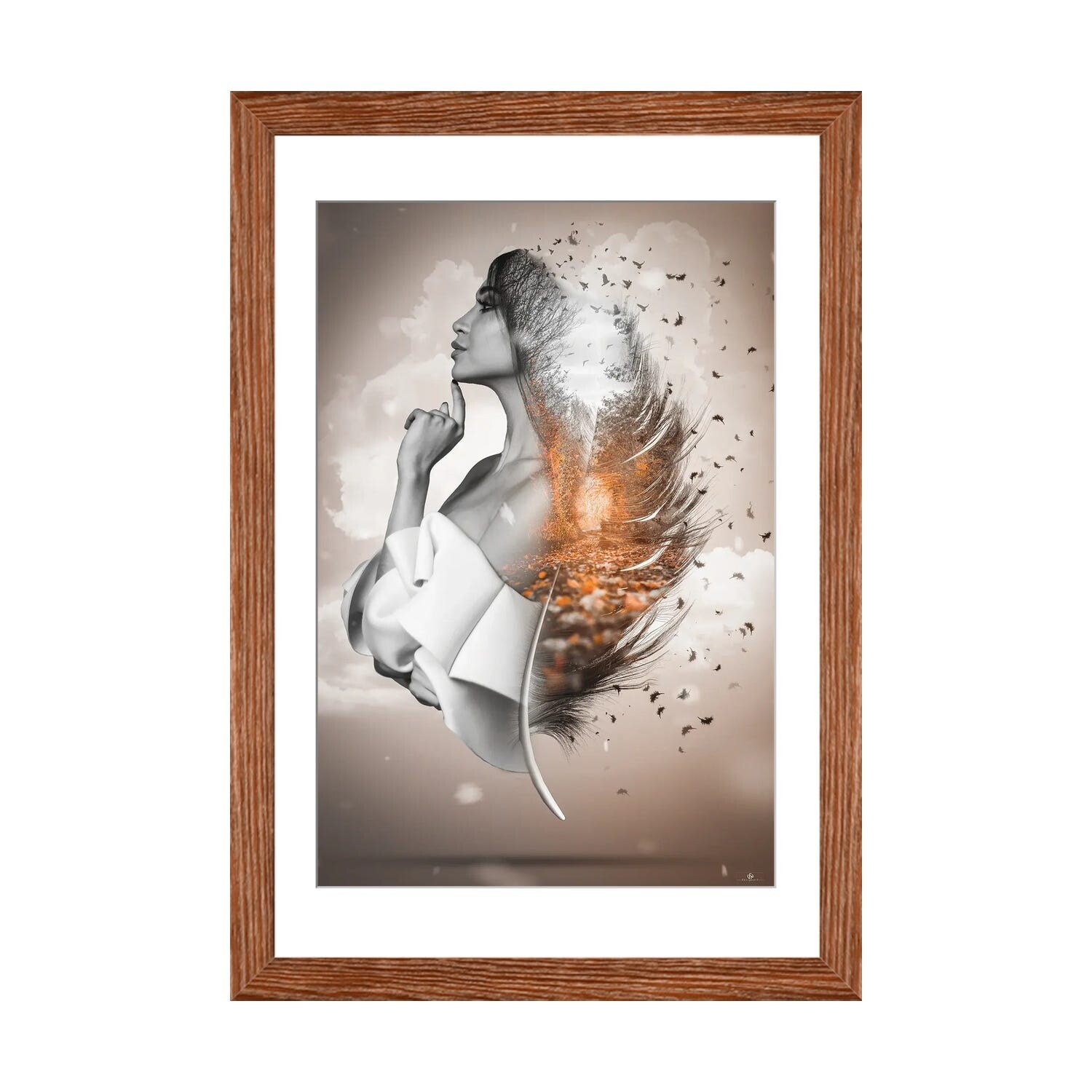 Designart "Dynamic Feather Woman Portrait III" Contemporary Glam Framed Art Print