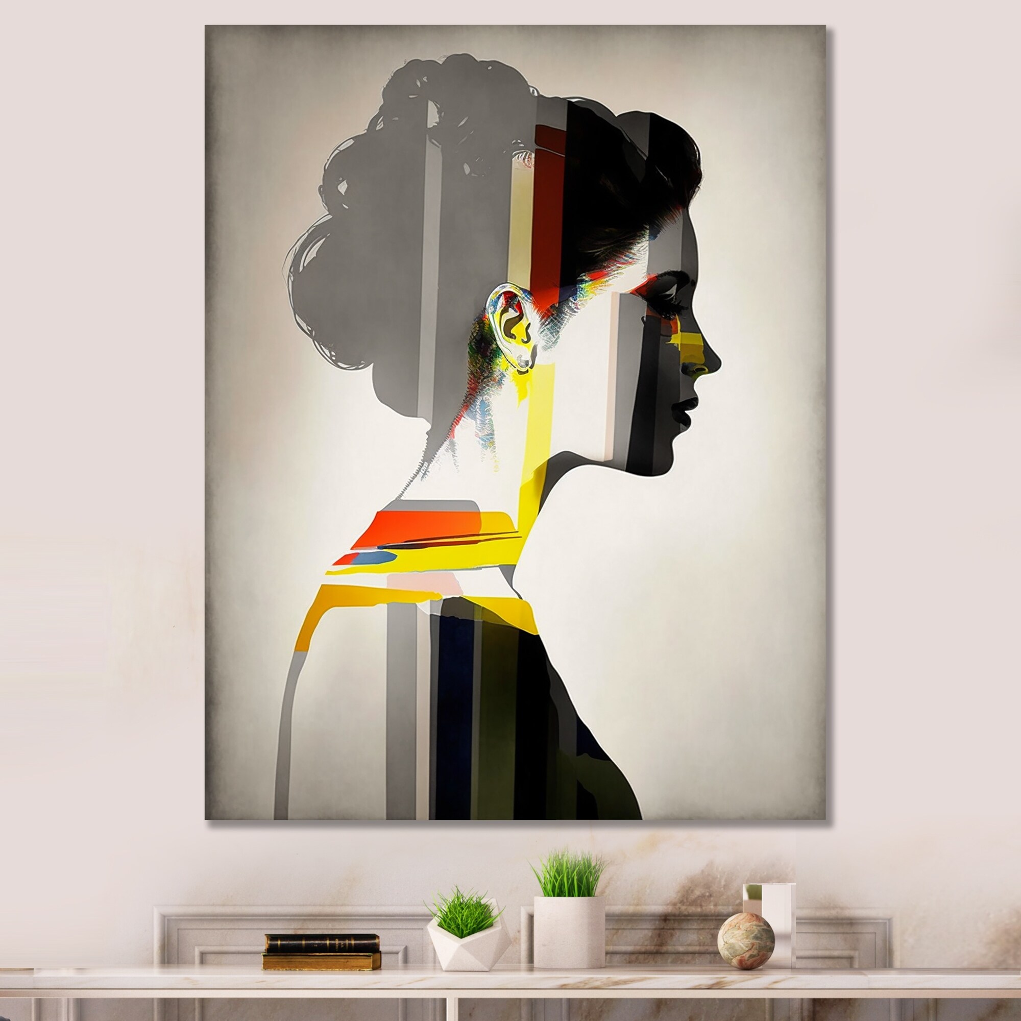 Designart "Monochrome Silhouette With Strokes of Yellow" Modern Woman Wall Art Living Room