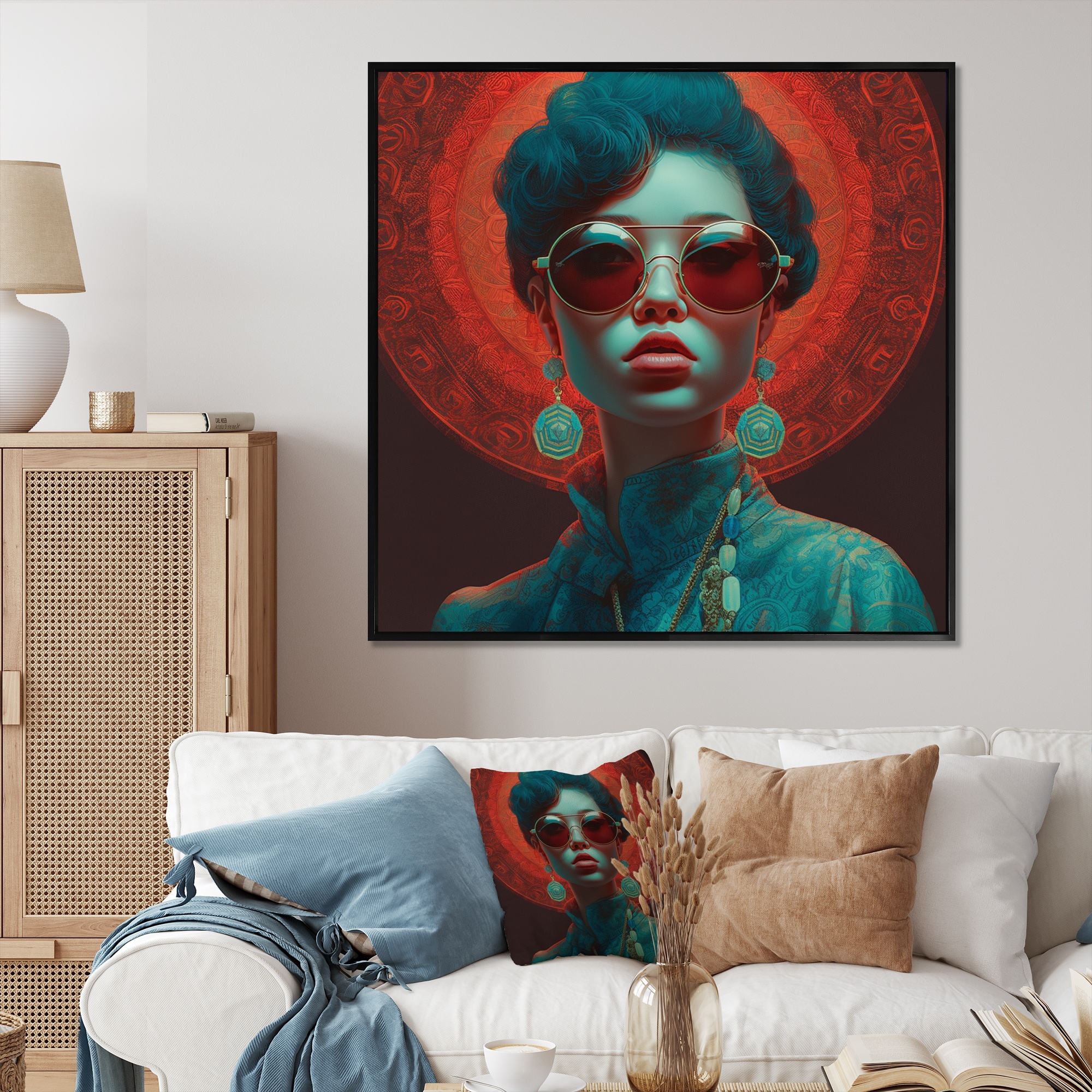 Designart "Abstract Fashion Orange Woman Portrait" Glam Framed Canvas Wall Art