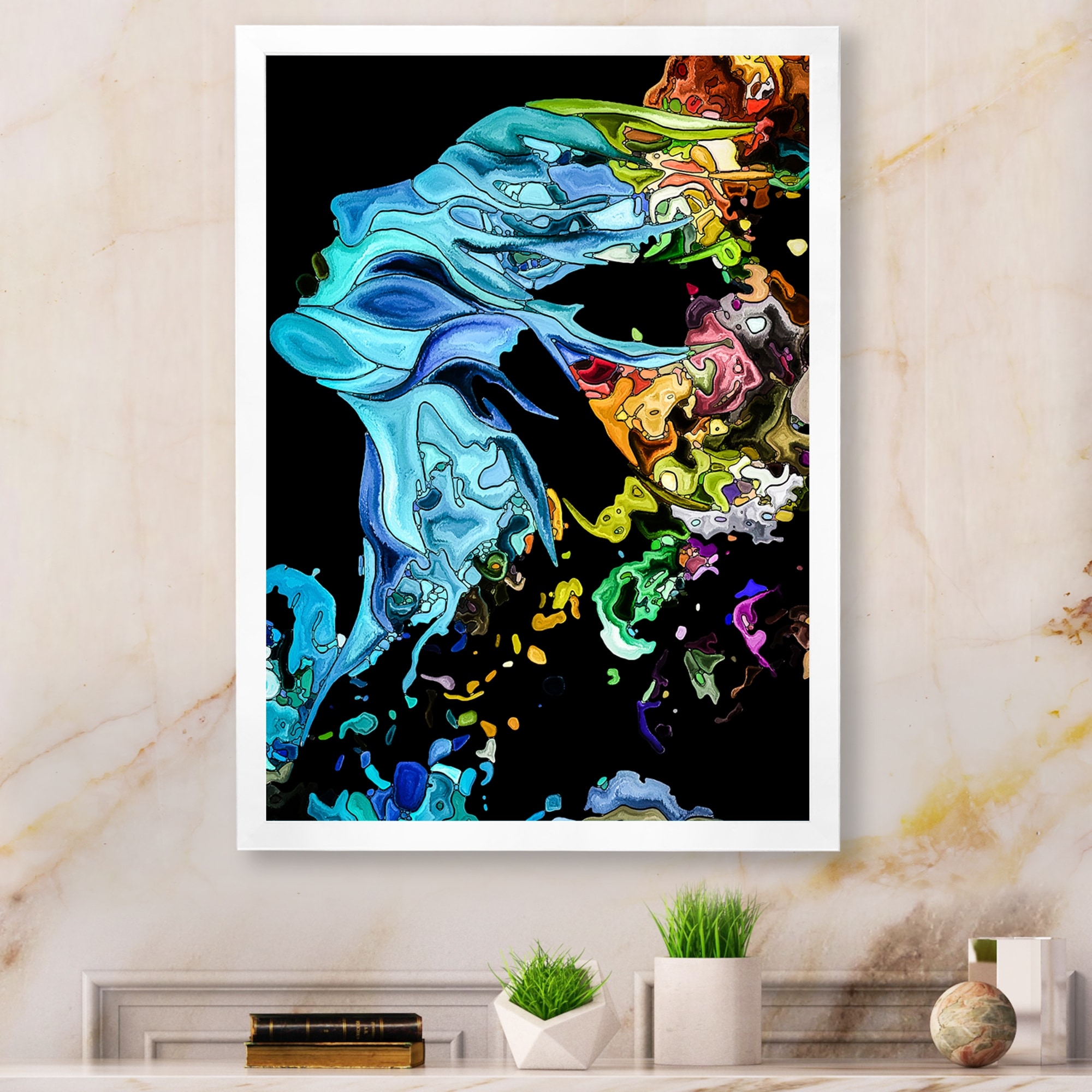 Designart "Liquid Art Woman Face" Modern Framed Wall Decor