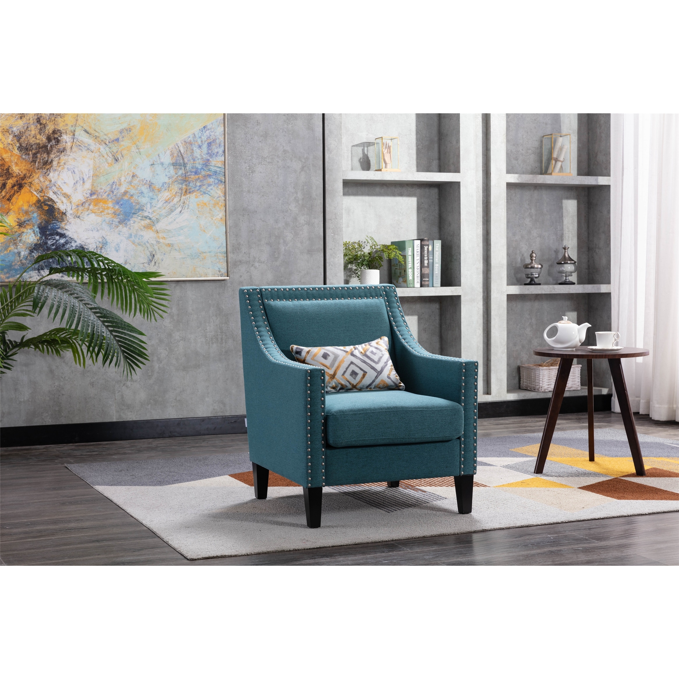 Accent armchair living room chair with nailheads and solid wood legs