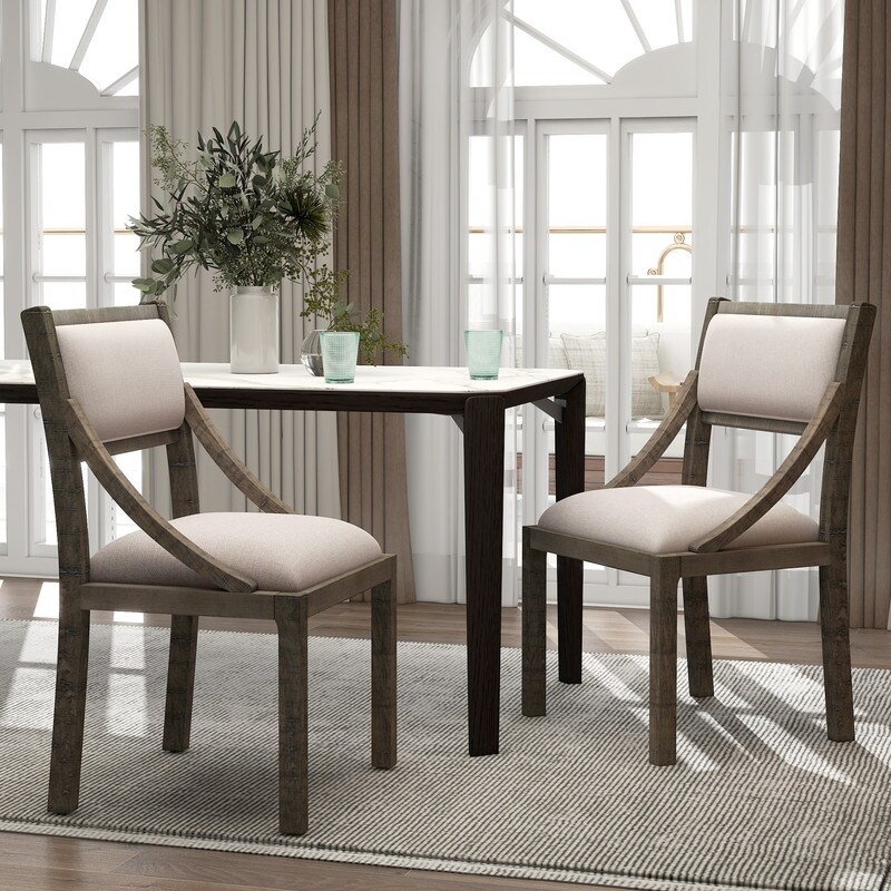 Solid Wood Frame Linen Fabric Dining Chair Set of 2