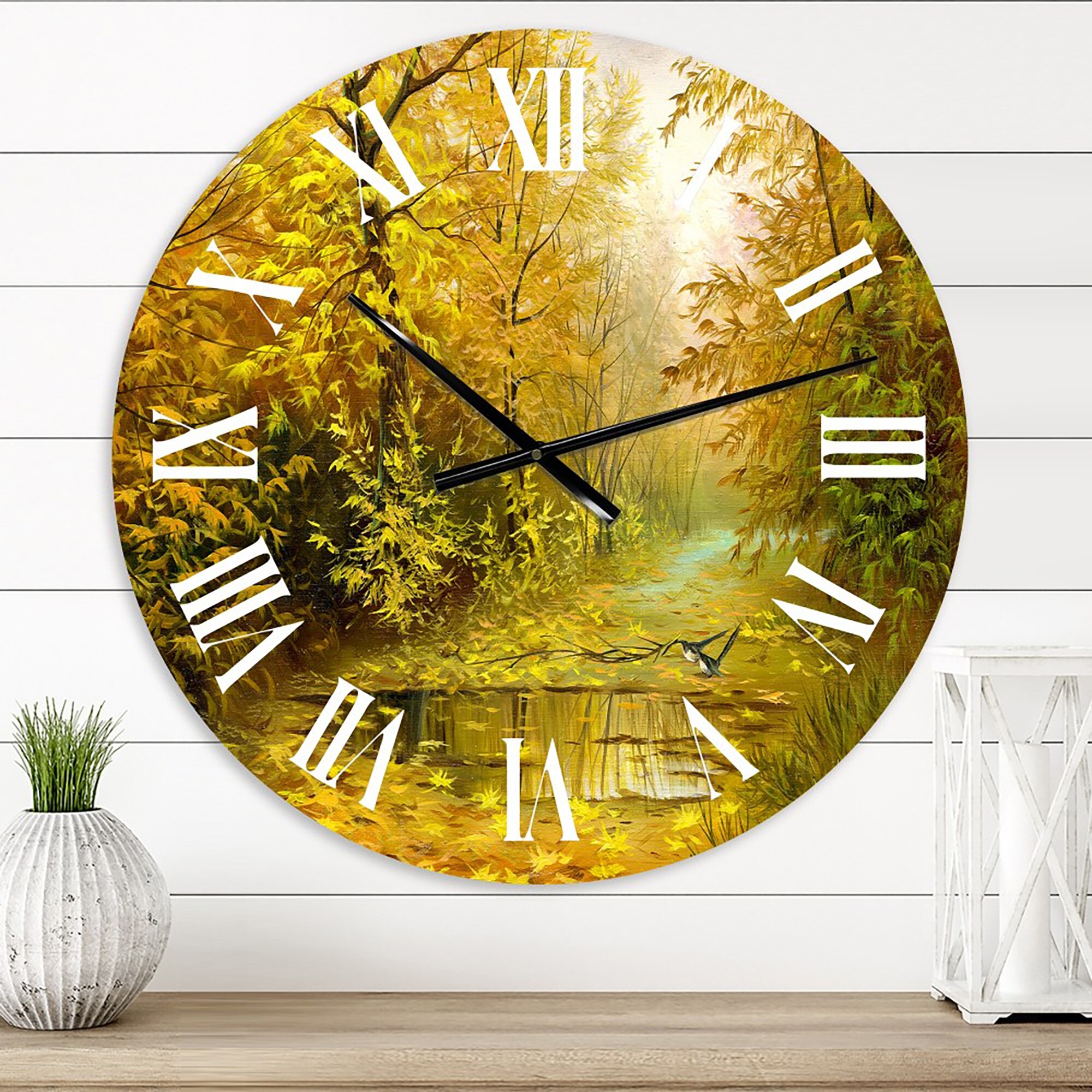 Designart 'Road In Yellow Woodlands' Country wall clock
