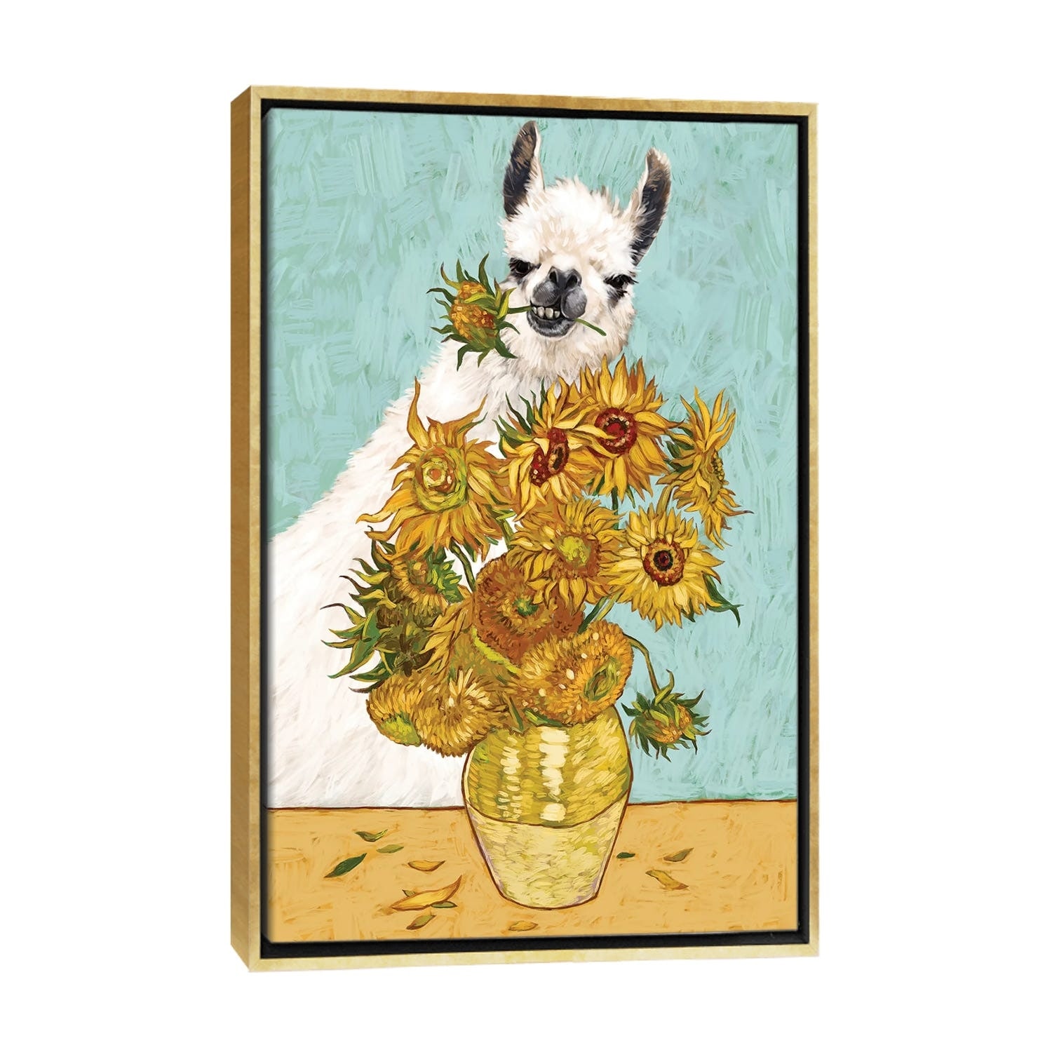 iCanvas "Naughty Llama And the Sunflowers" by Big Nose Work Framed Canvas Print