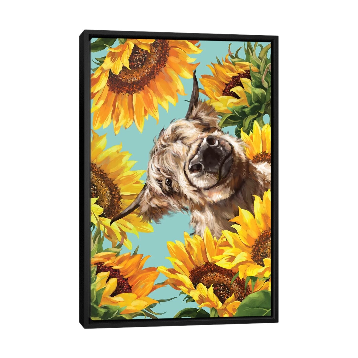 iCanvas "Highland Cow With Sunflower" by Big Nose Work Framed Canvas Print
