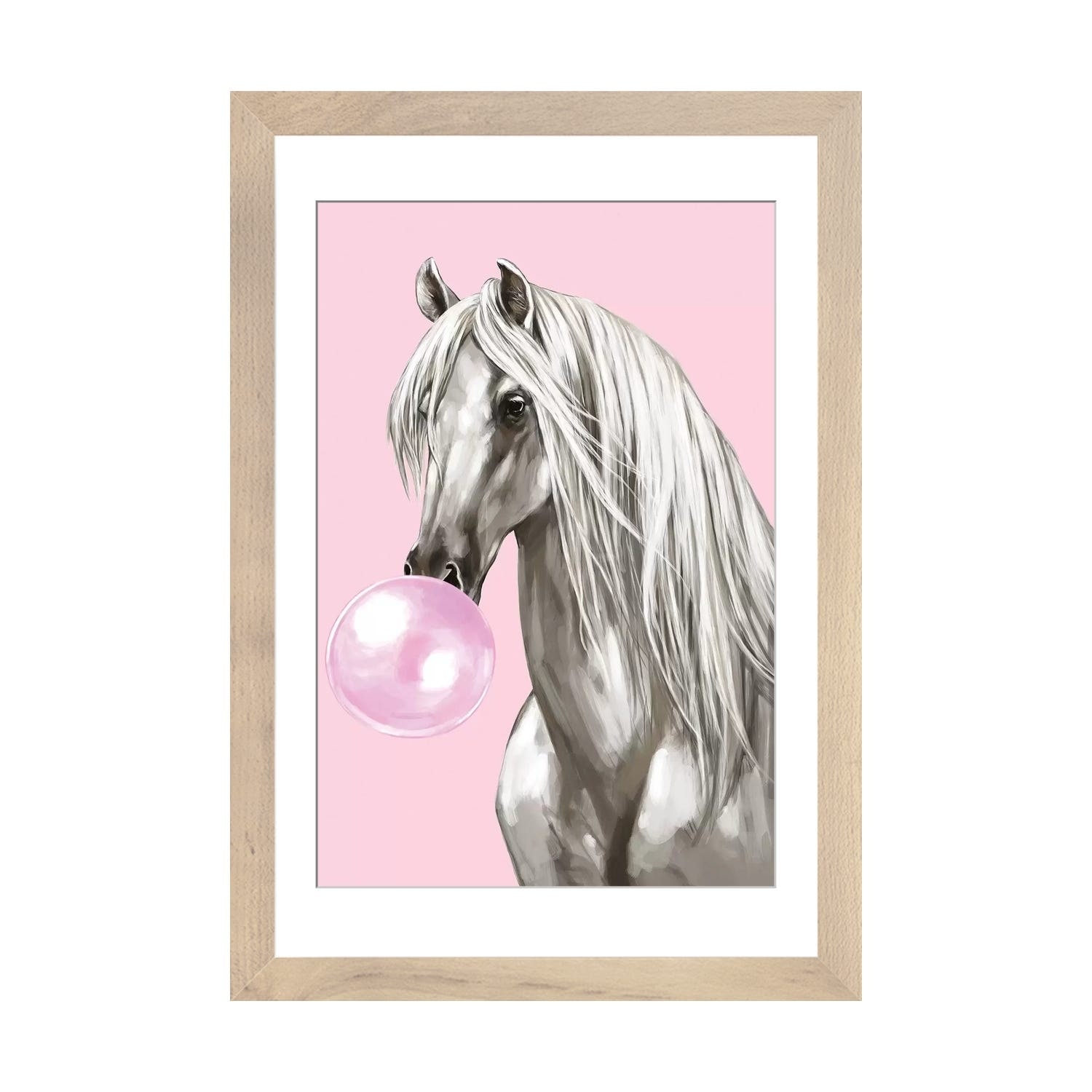 iCanvas "White Horse With Bubbble Gum in Pink" by Big Nose Work