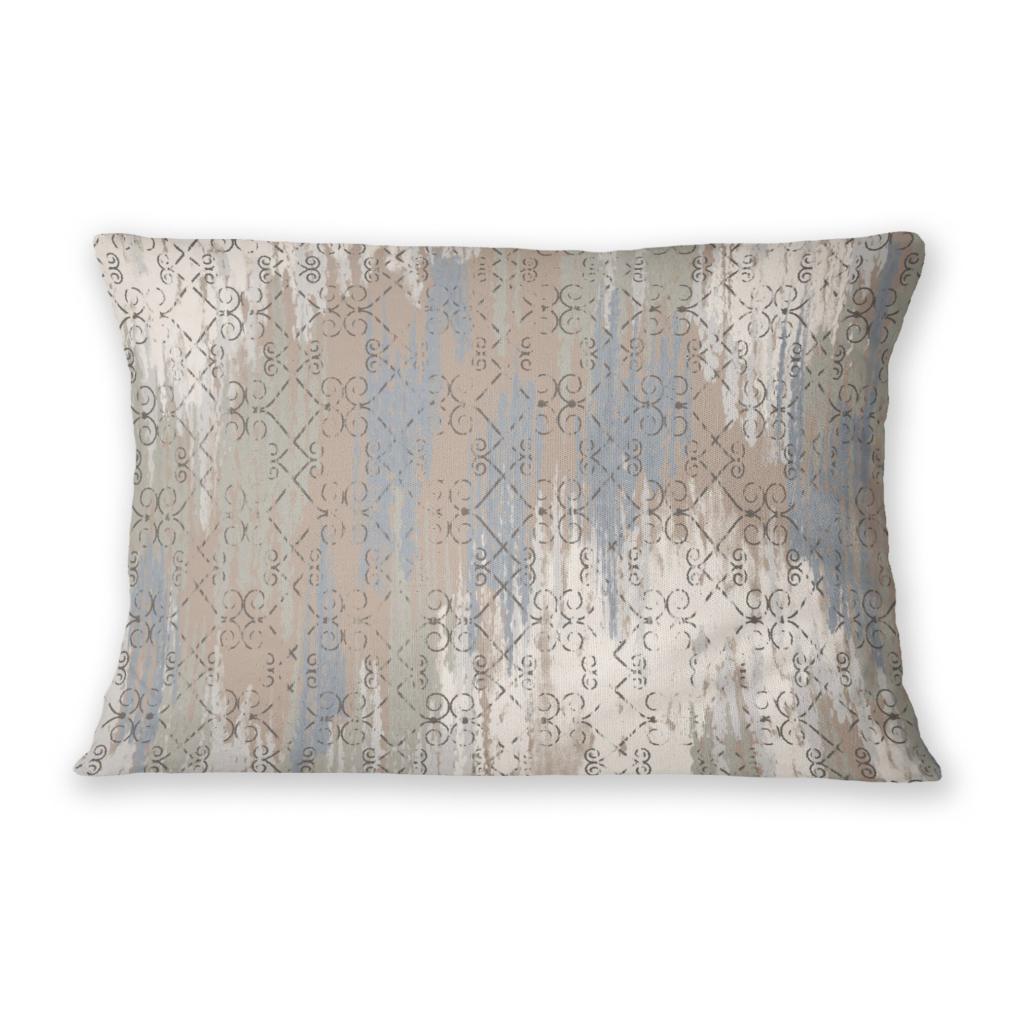 DISTRESSED WROUGHT IRON TAN & BLUE Lumbar Pillow By Kavka Designs