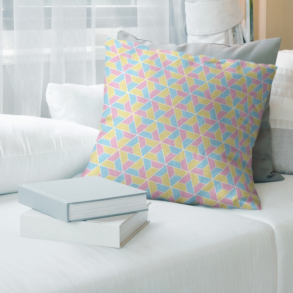 Yellow Feature Three Color Trapezoids Throw Pillow