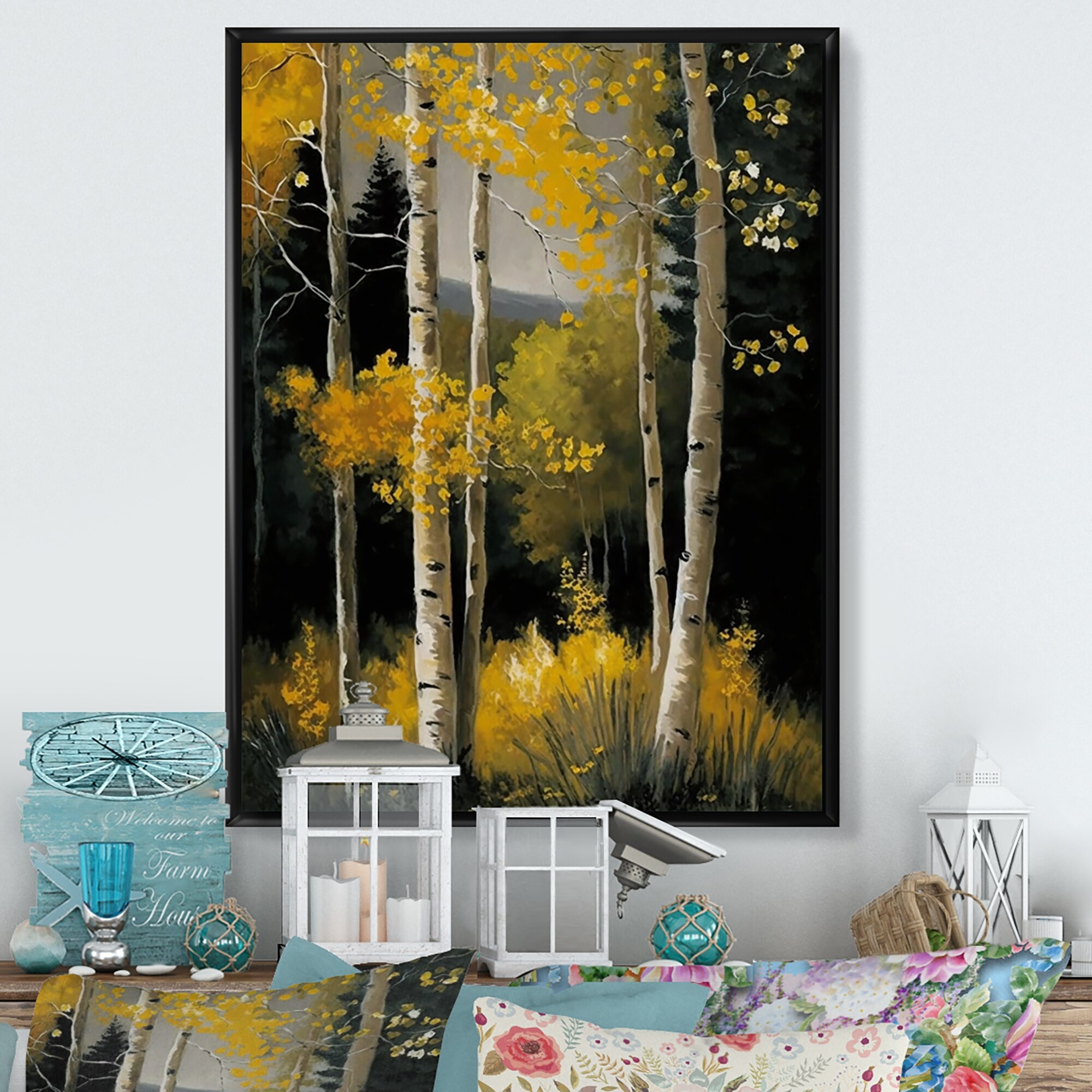 Designart "Yellow Leaf Birches in the Forest III" Landscape Forest Framed Canvas Wall Art Print