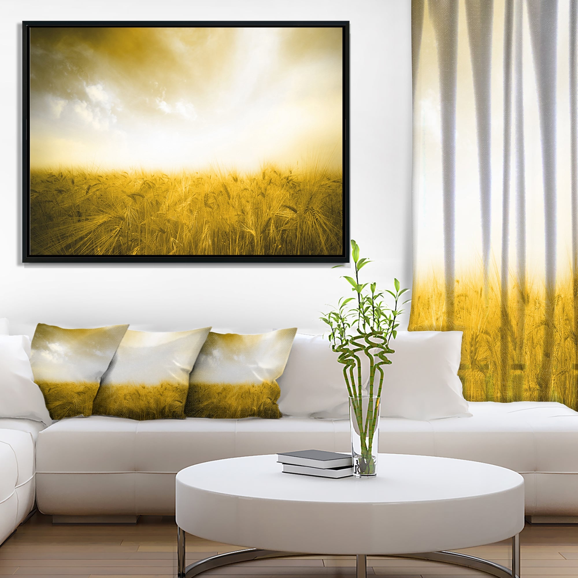 Designart "Yellow Meadow under Bright Sun" Landscape Framed Canvas Art Print