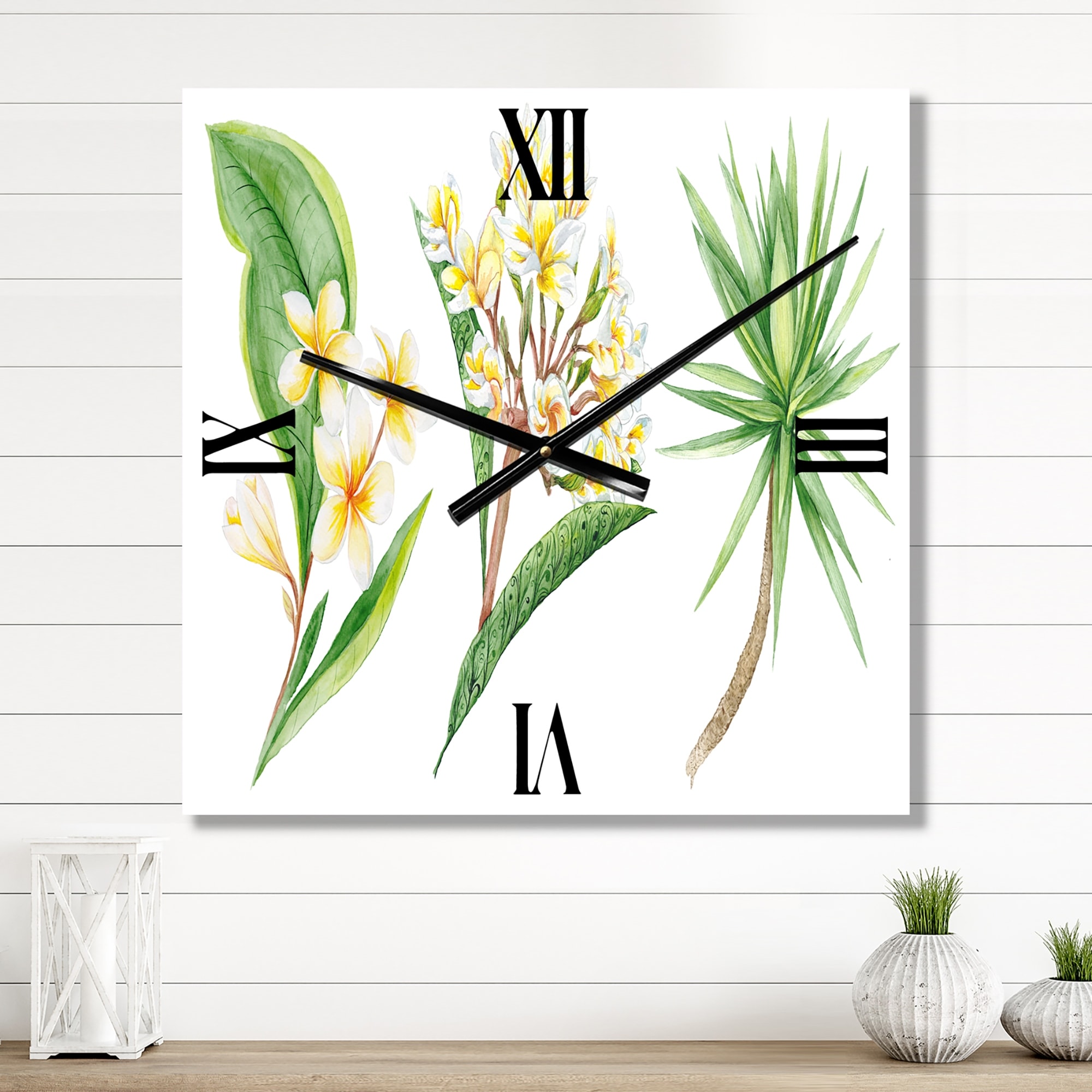 Designart 'Tropical Foliage and Yellow Flowers XII' Traditional Large Wall Clock