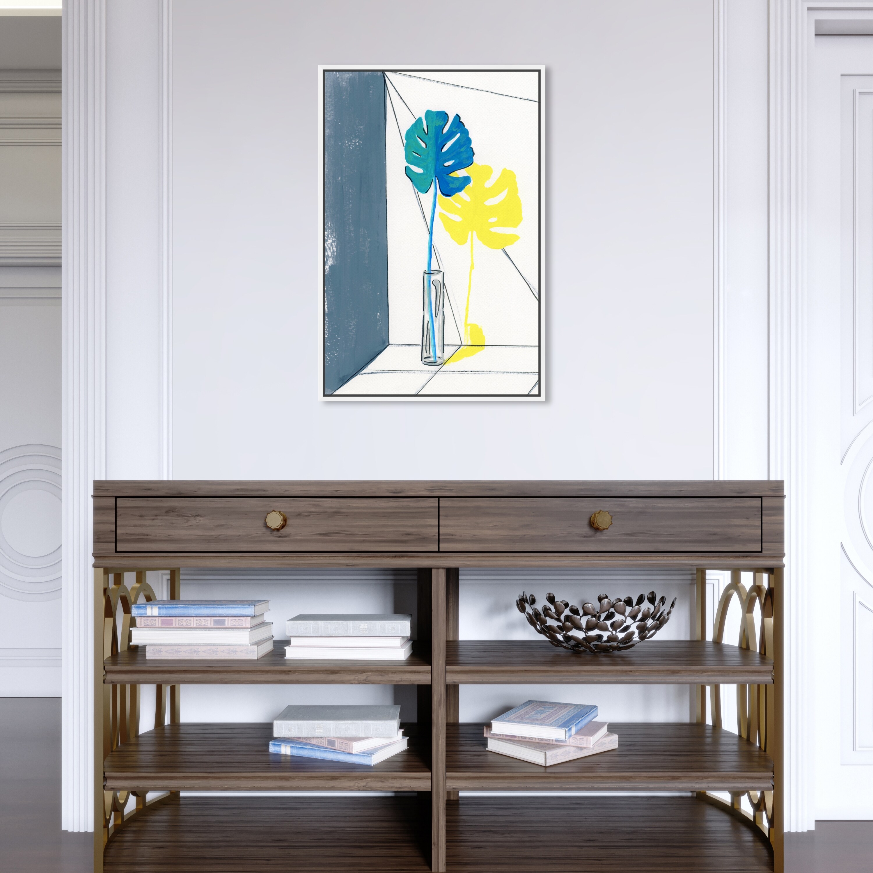 Oliver Gal 'Blue Monstera' Floral and Botanical Wall Art Framed Canvas Print Botanicals - Blue, Yellow