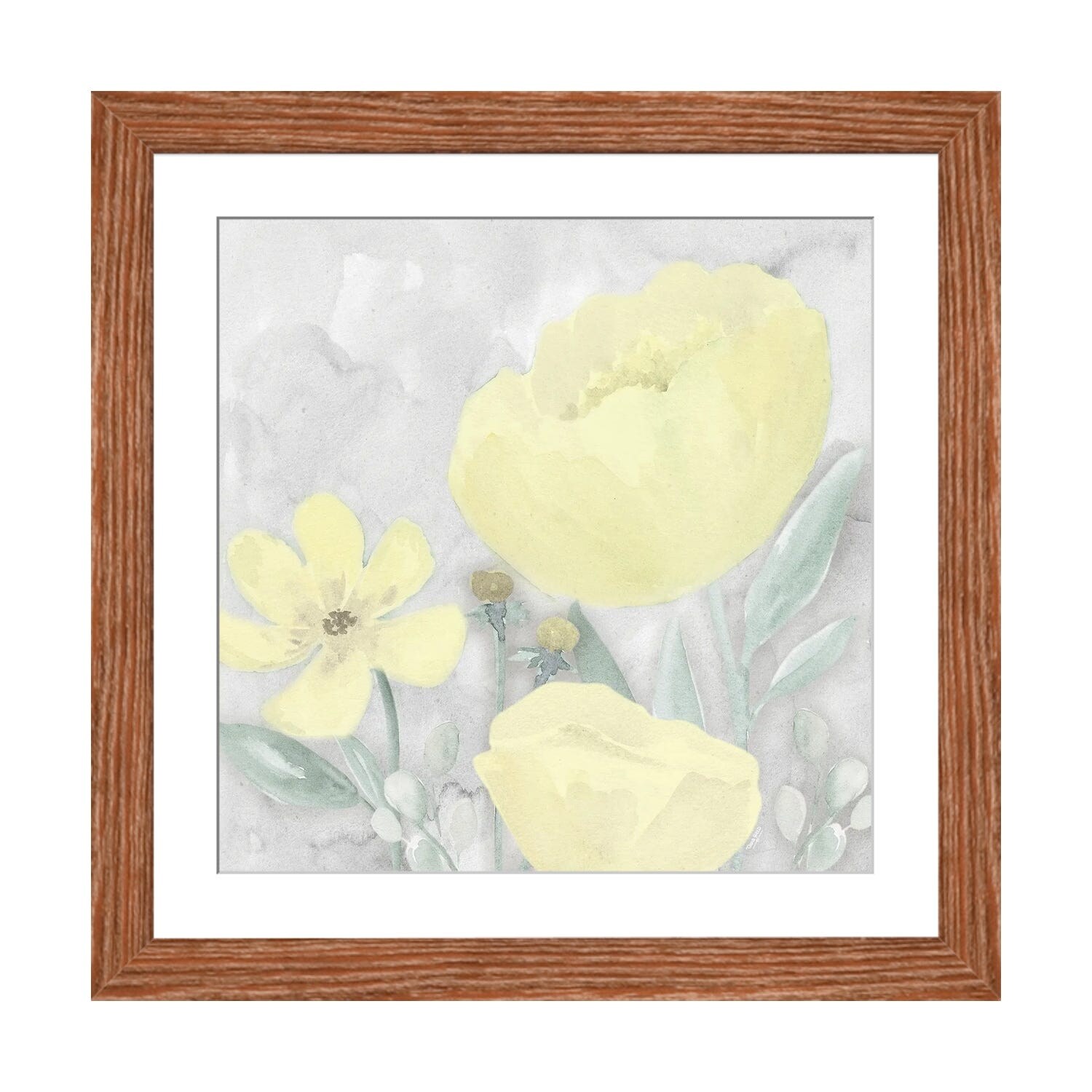 Designart "Vintage Yellow Flower II" Traditional Framed Art Print