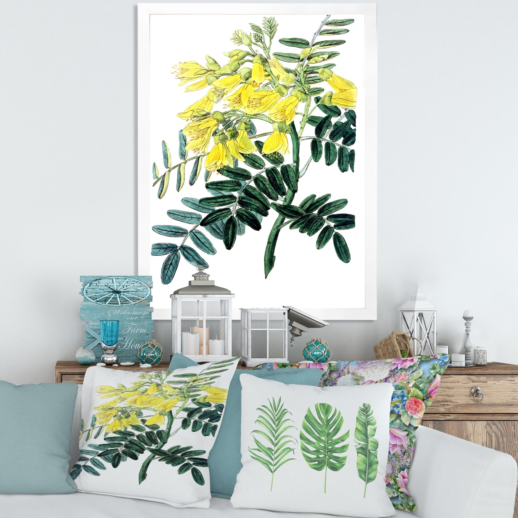 Designart "Tropical Foliage and Yellow Flowers VII" Modern Framed Canvas Wall Art Print