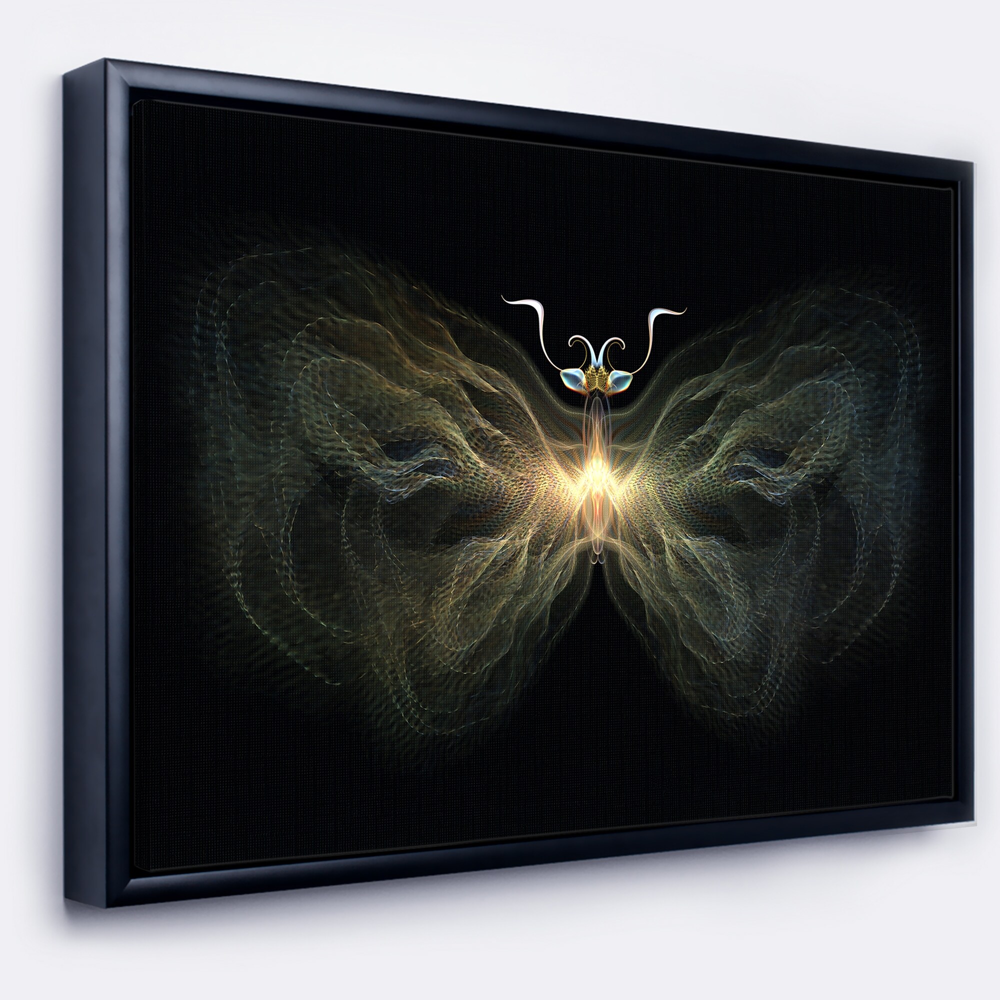 Designart "Yellow Fractal Butterfly in Dark" Abstract Print on Framed Canvas