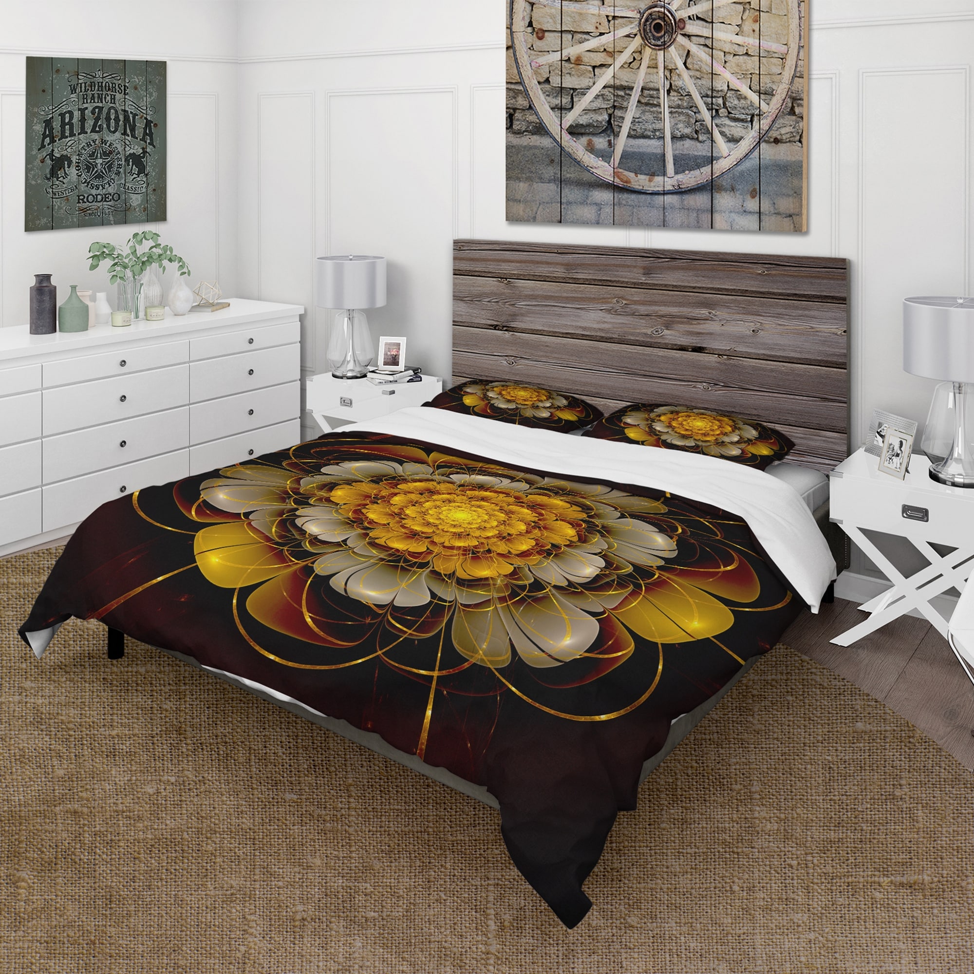 Designart 'Yellow Fractal Flower' Modern Duvet Cover Set