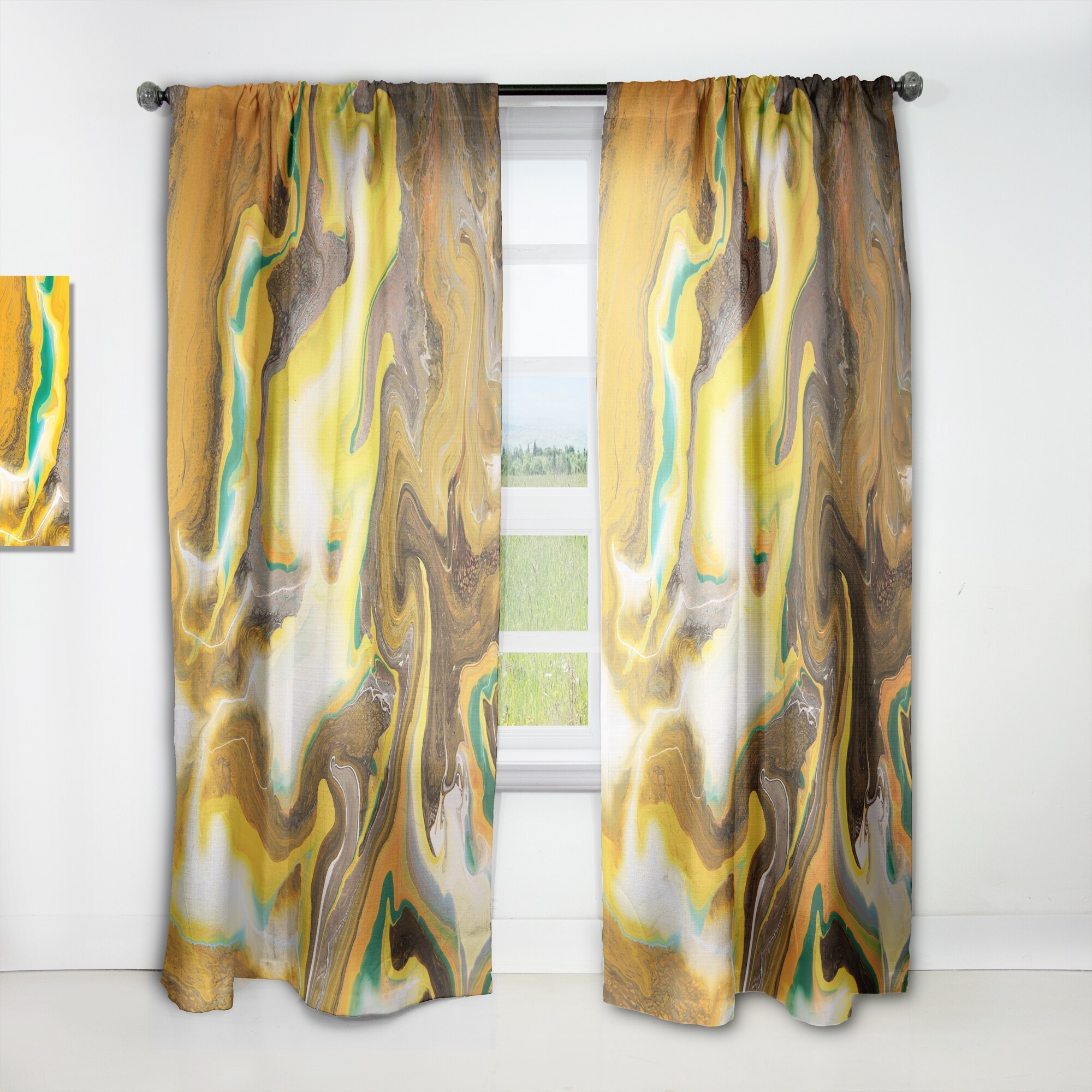 Designart 'Bright Khaki And Yellow Marble Art' Modern Curtain Panels