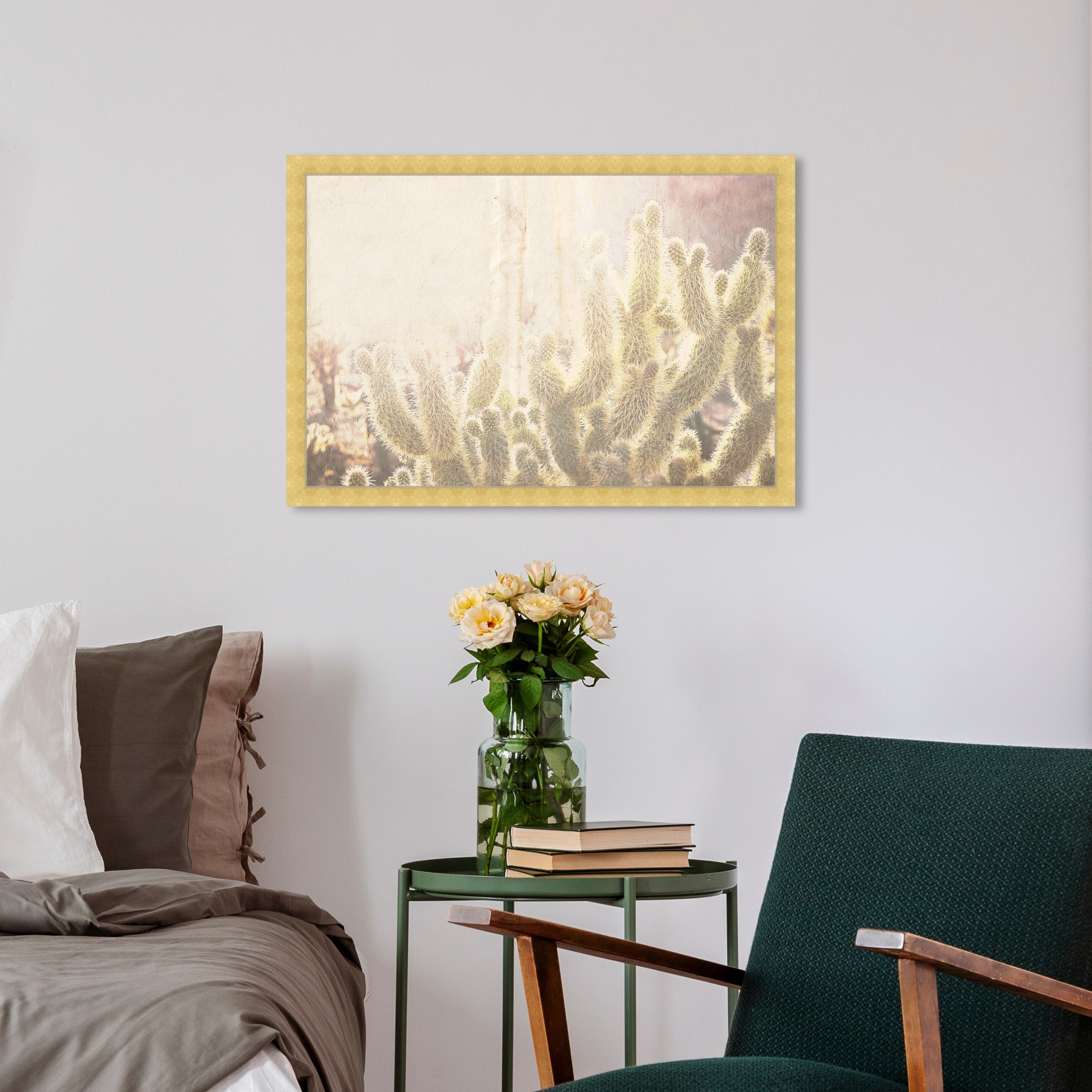 Oliver Gal 'Cactus' Floral and Botanical Wall Art Framed Print Botanicals - Green, Yellow