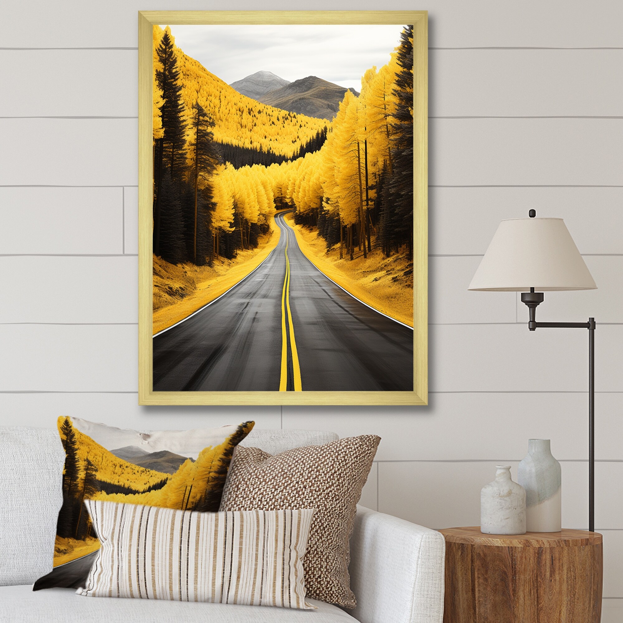 Designart "Road Through Yellow Forest IV" Road Framed Wall Decor