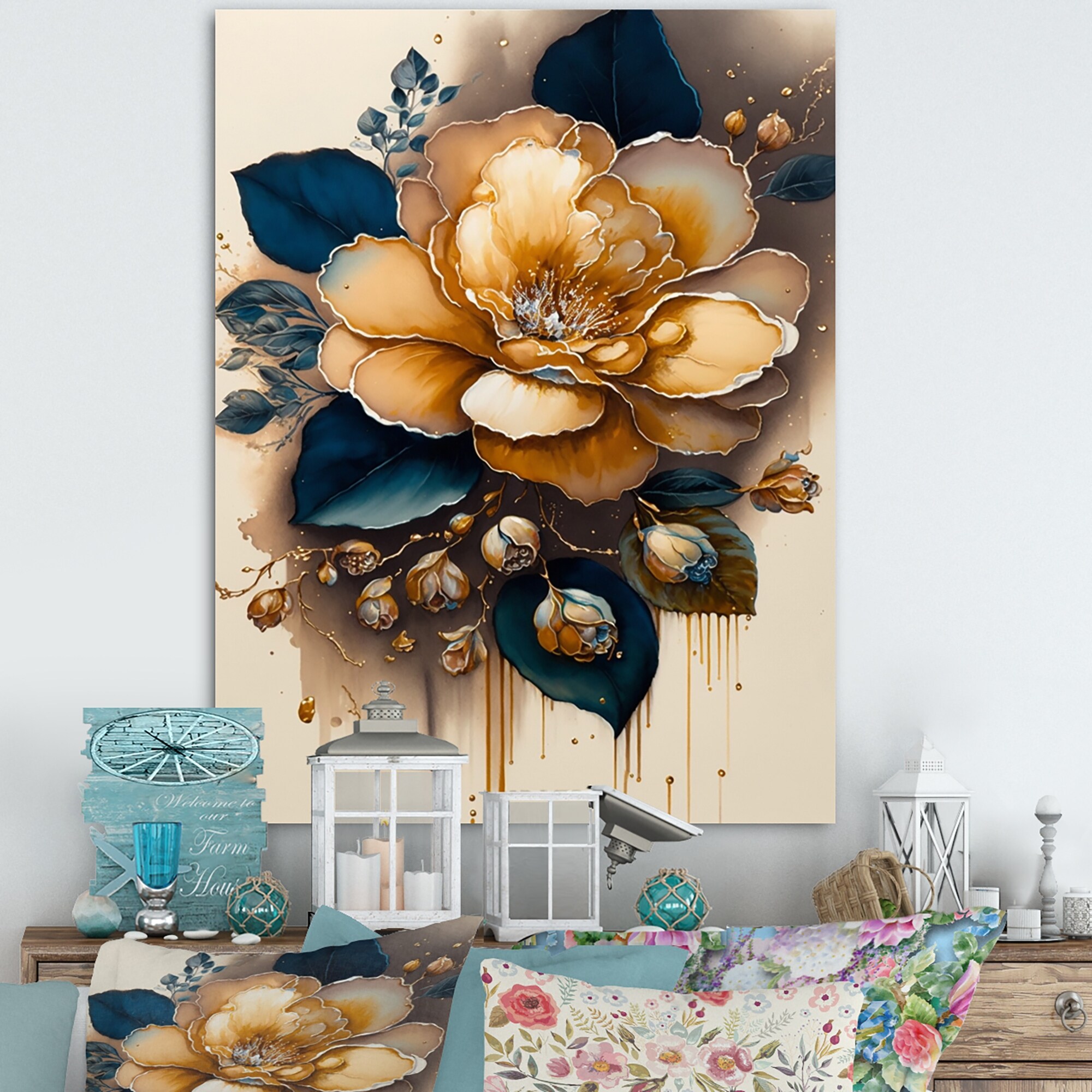 Designart 'Yellow And Dark Blue Camellia Flower I' Floral & Botanical Canvas Wall Art