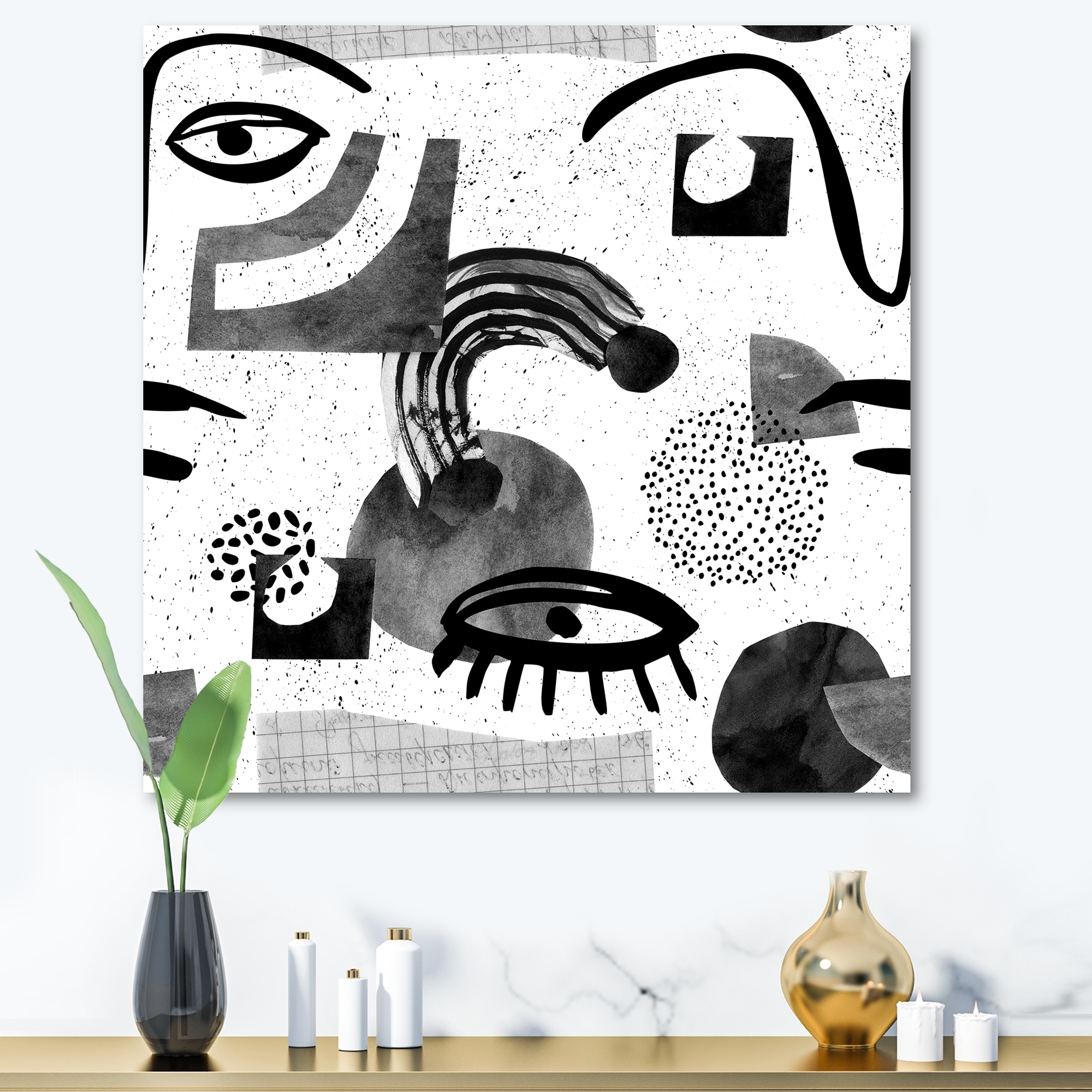 Designart "Collage of Eyes & Doodles in Contemporary Style II" Modern Canvas Wall Art Print