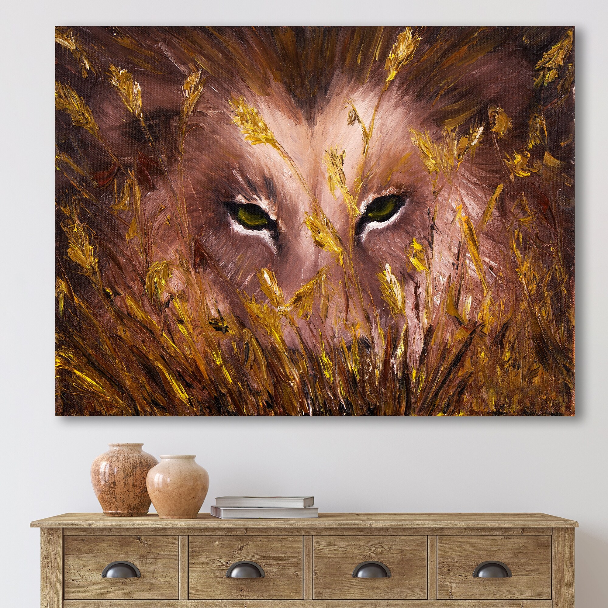 Designart "Wolf Eyes in the Grass" Farmhouse Canvas Wall Art Print