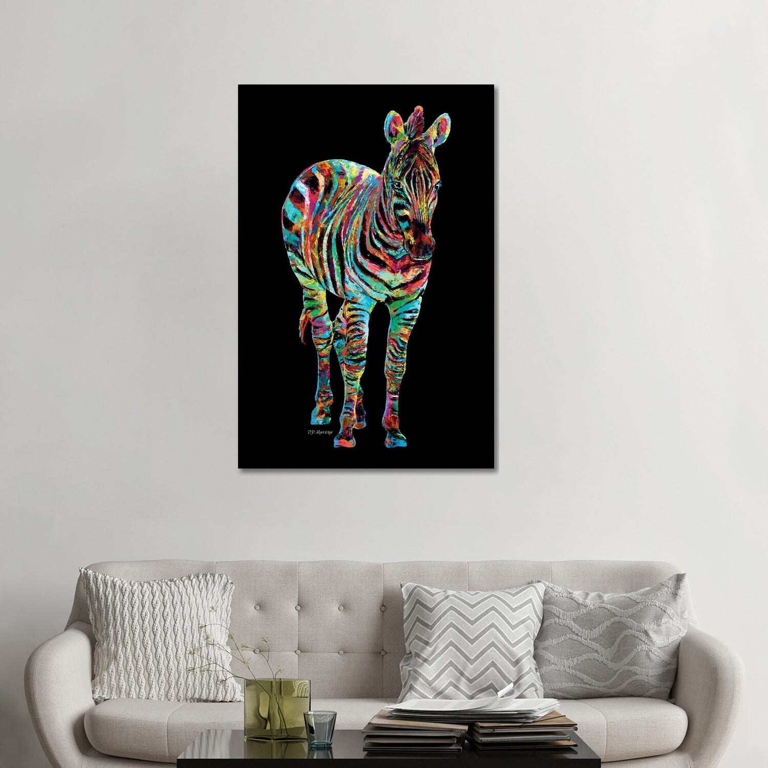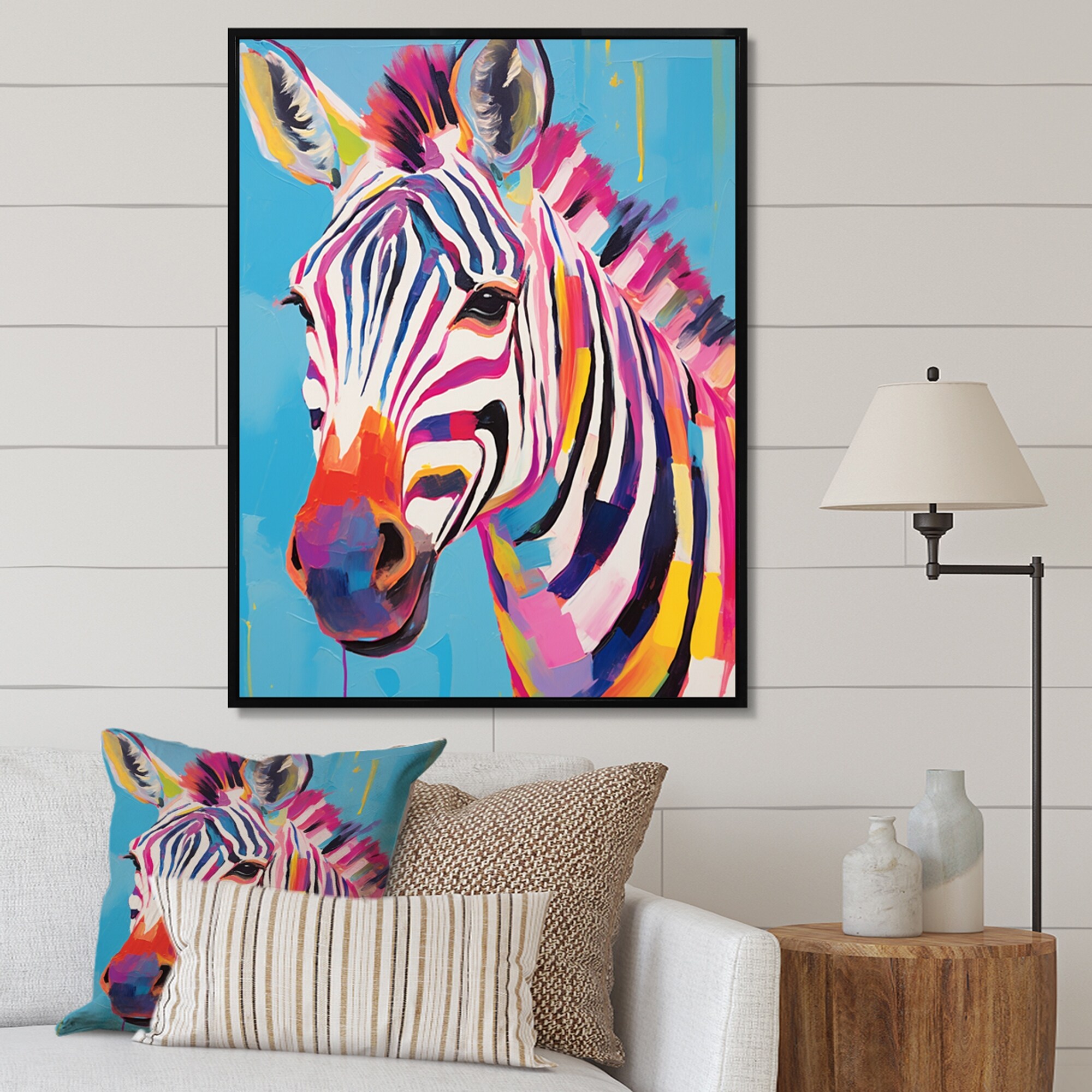 Designart "Colorful Zebra Expressionistic Stripes II" Animals Zebra Framed Canvas Print