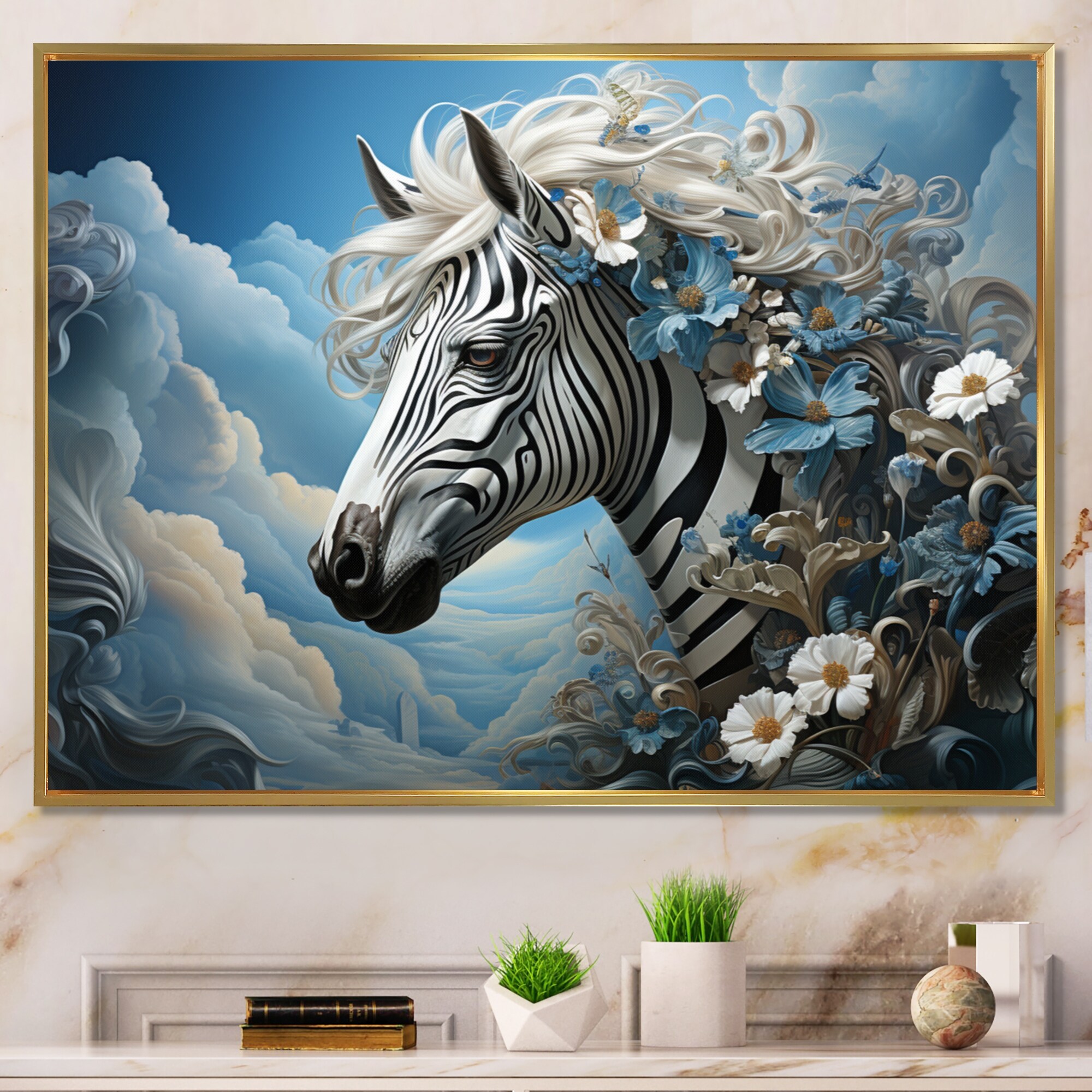 Designart "Surreal Zebra Dreams I" Animals Zebra Framed Wall Art Prints