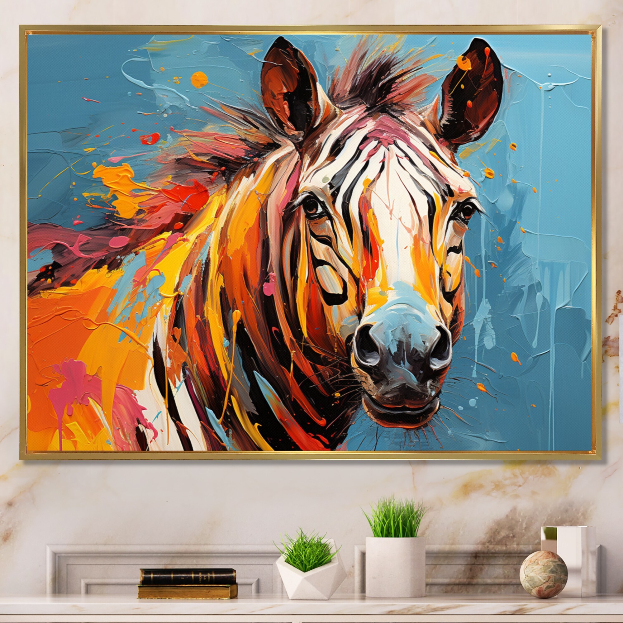 Designart "Blue Orange Popart Zebra I" Animals Zebra Framed Canvas Art Print