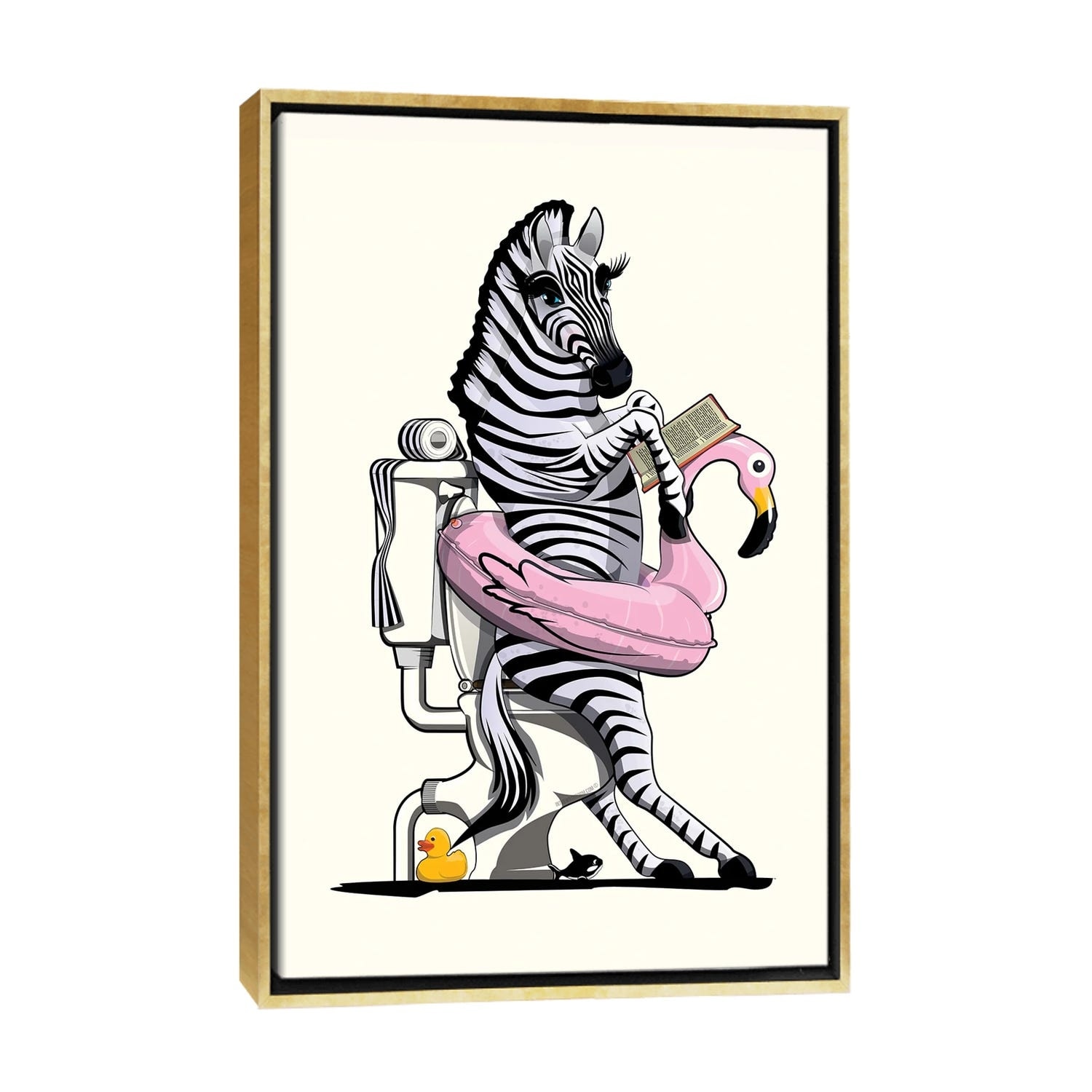 iCanvas "Zebra Baboon on the Toilet" by WyattDesign Framed Canvas Print