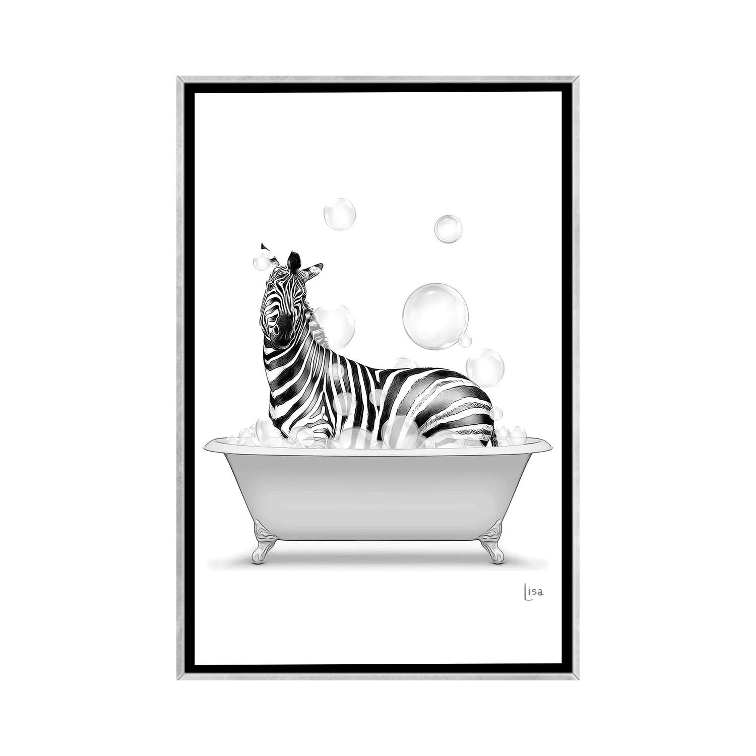 iCanvas "Zebra In Bathtub With Bubbles" by Printable Lisa's Pets Framed