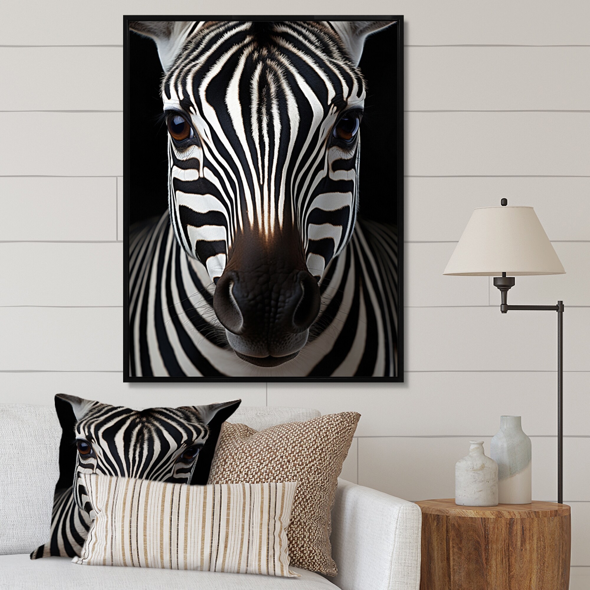Designart "Black And White Zebra Portrait III" Animals Zebra Framed Wall Decor