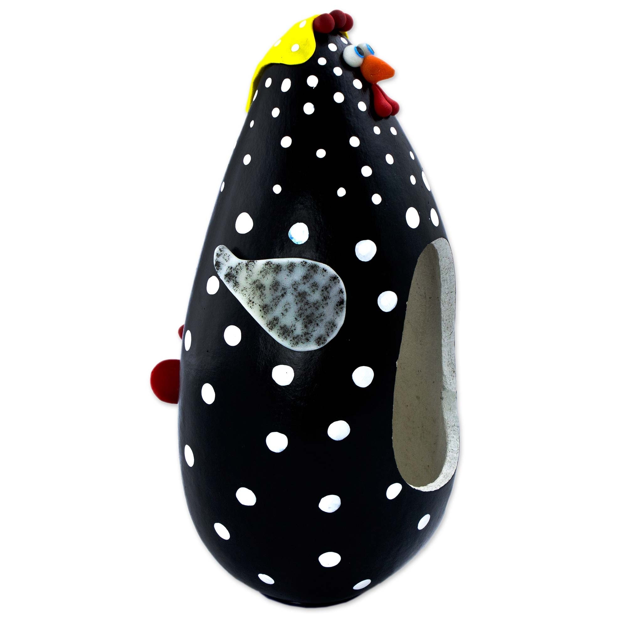 Novica Handmade Spotted Black Hen Gourd Egg Basket