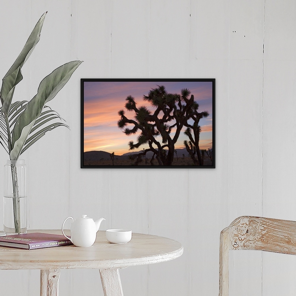 "Joshua Trees Silhouetted At Sunset" Black Float Frame Canvas Art