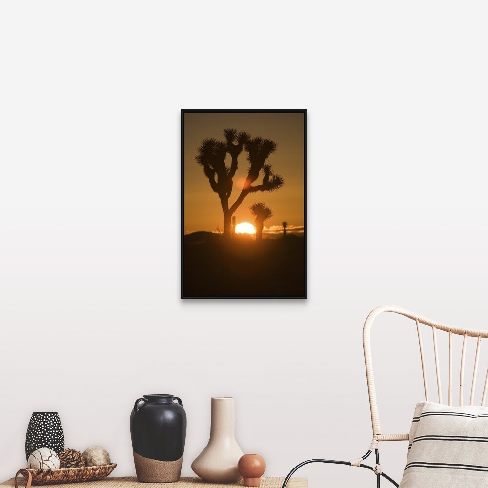 "Joshua Trees Silhouetted at Sunset" Black Float Frame Canvas Art