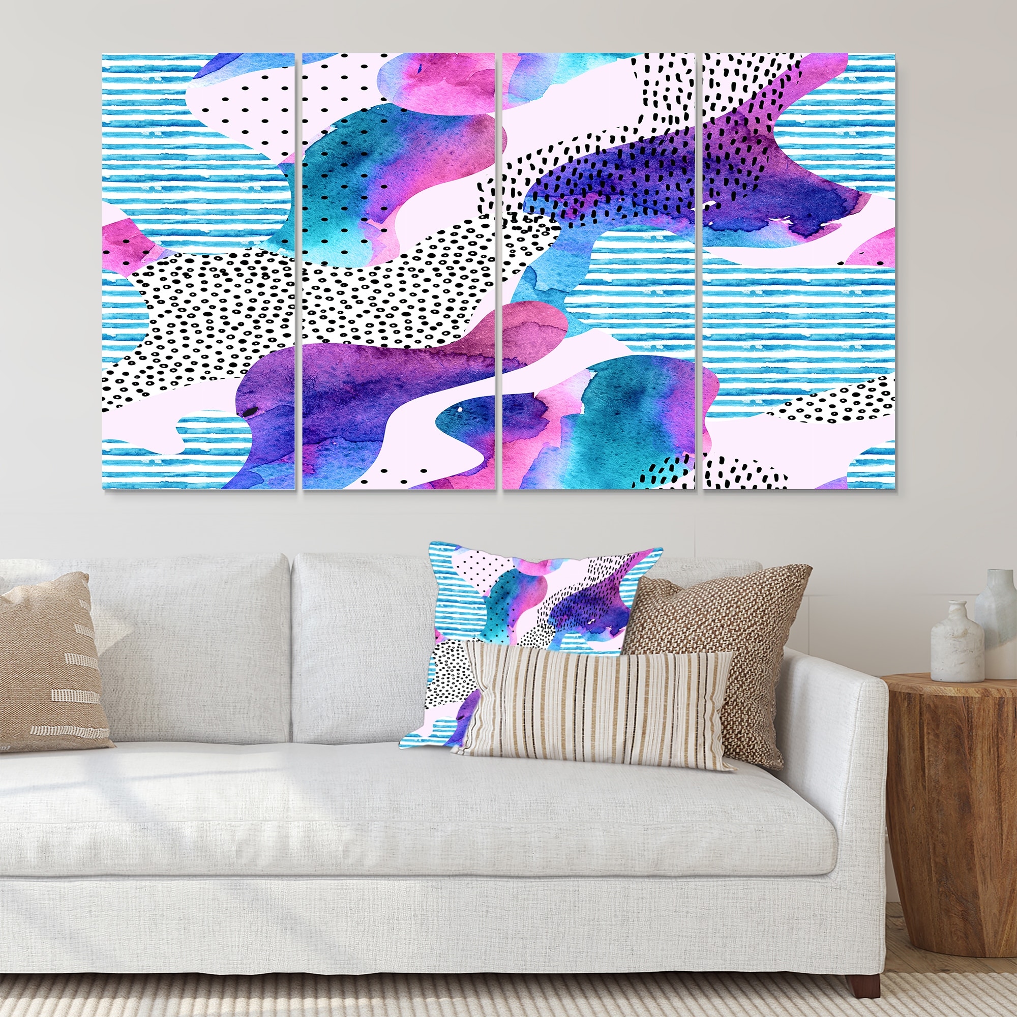 Designart "Organic Shapes in Purple And Turquoise I" Modern Canvas Wall Art Print - 60x32 - 5 Panels