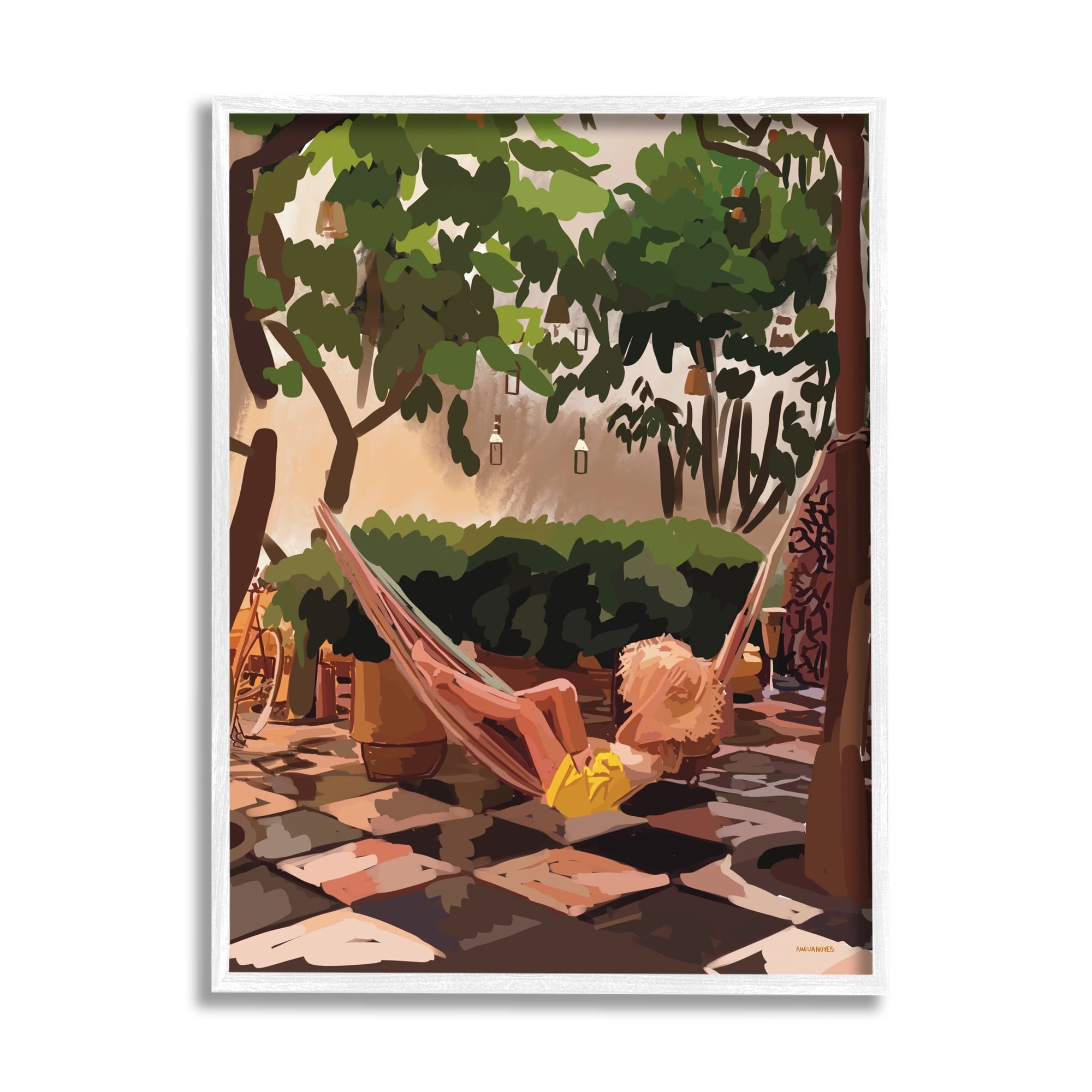 Stupell Industries Woman Lounging Hammock Tropical Summer Vacation Scenery Framed Wall Art, Design by Amelia Noyes