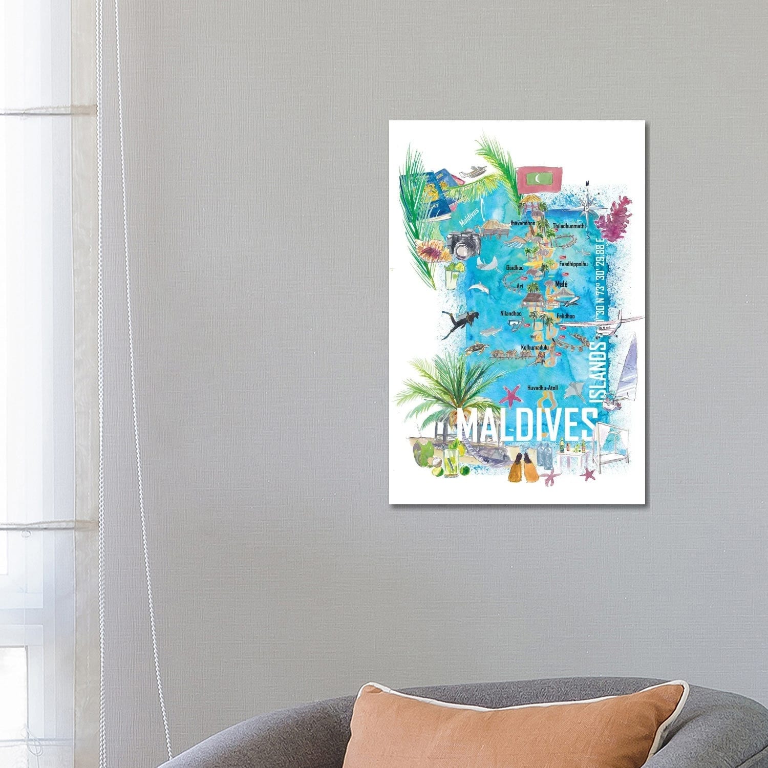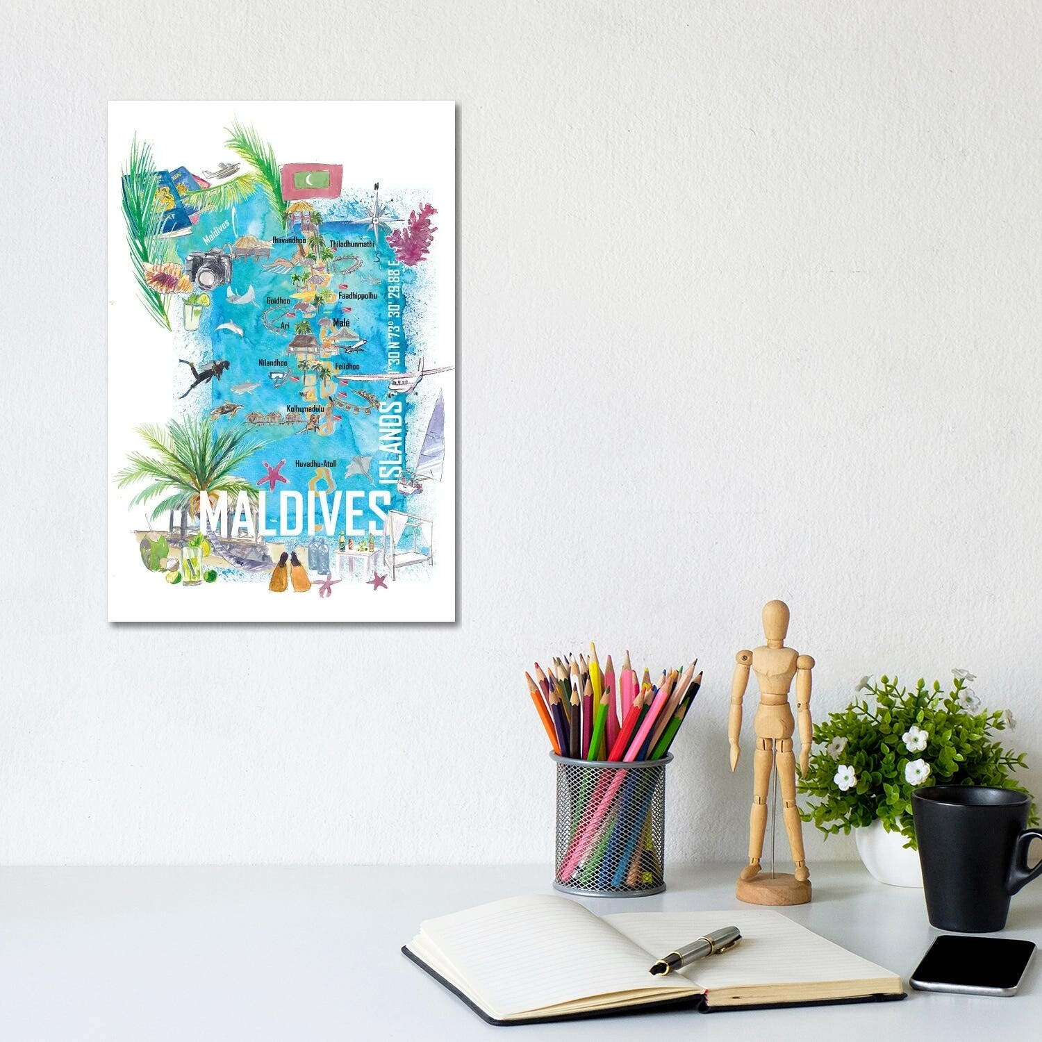 iCanvas "Maldives Islands Illustrated Travel Map With Vacations Dreams And Hideaways" by Markus & Martina Bleichner Canvas Print