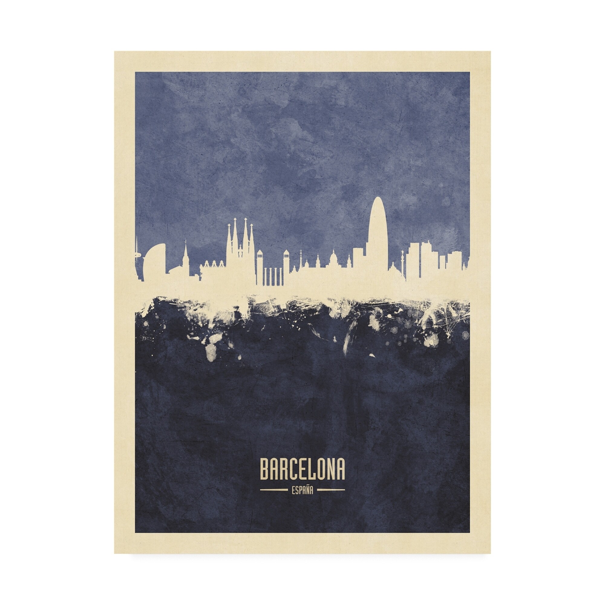 Michael Tompsett 'Barcelona Spain Skyline Navy' Canvas Art