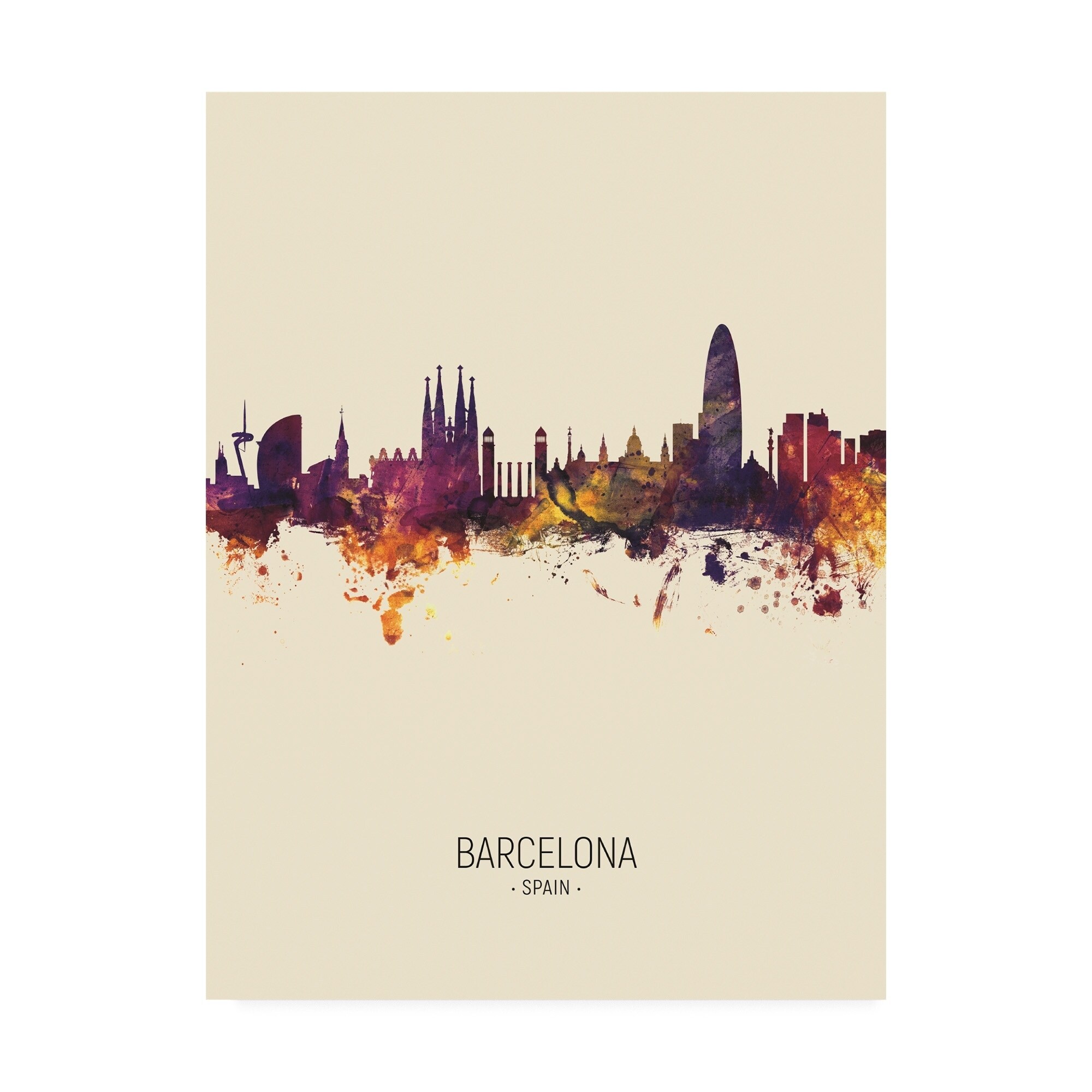 Michael Tompsett 'Barcelona Spain Skyline Portrait III' Canvas Art