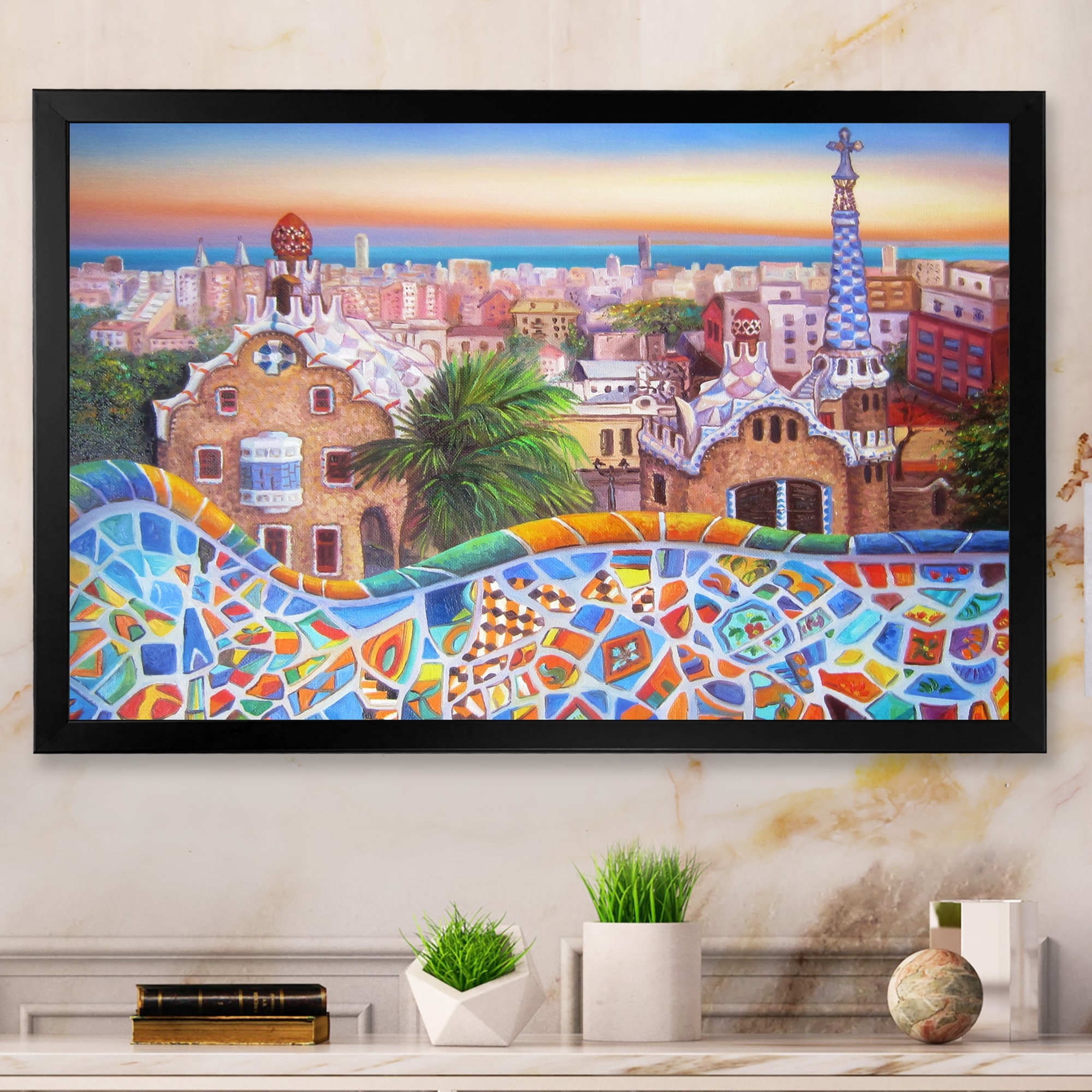 Designart "Painting Of Barcelona City" Colonial Framed Wall Decor