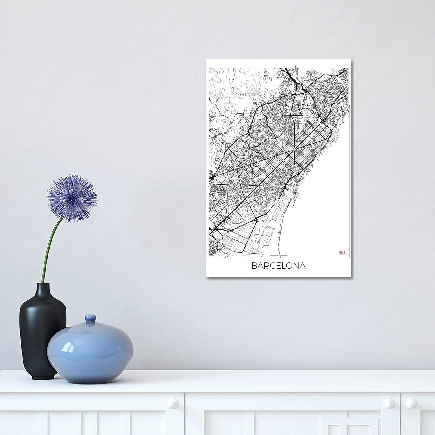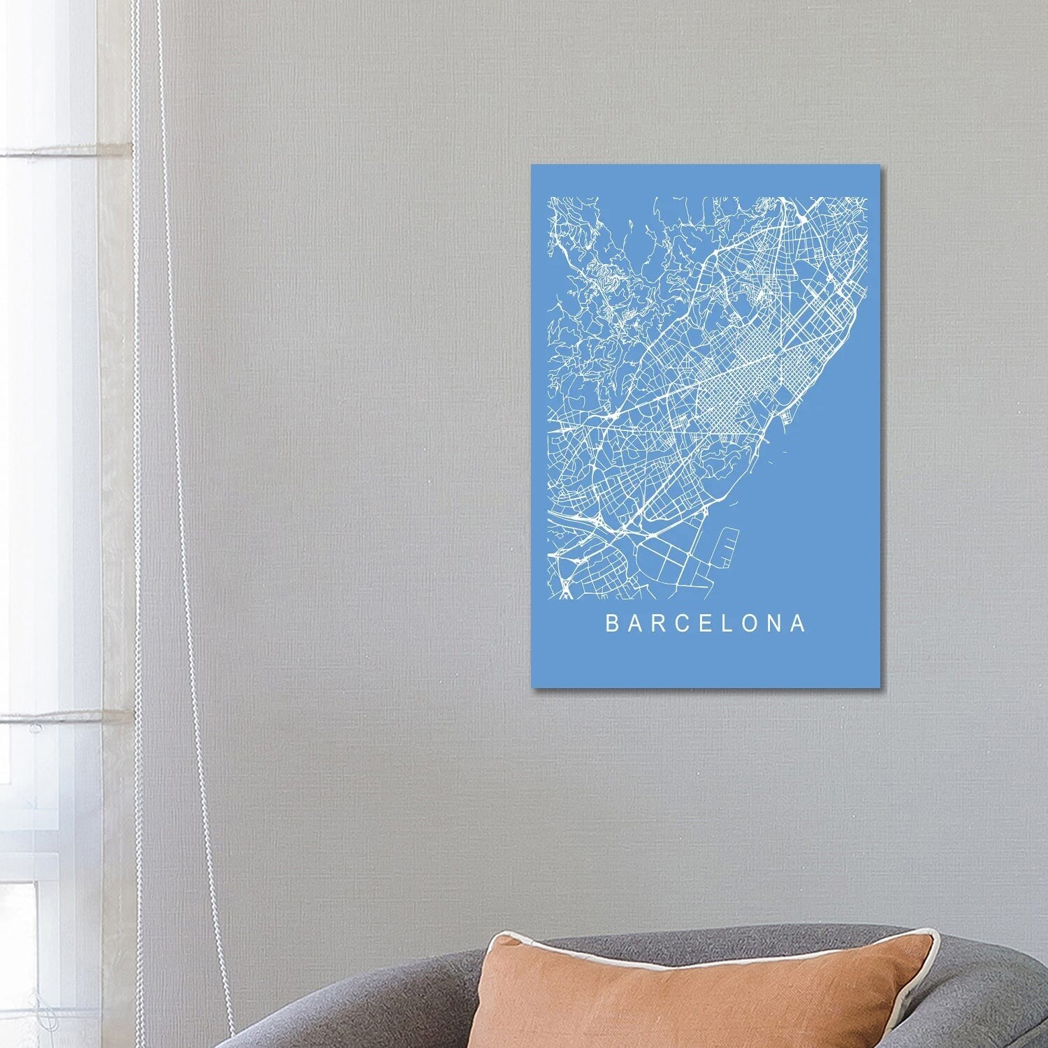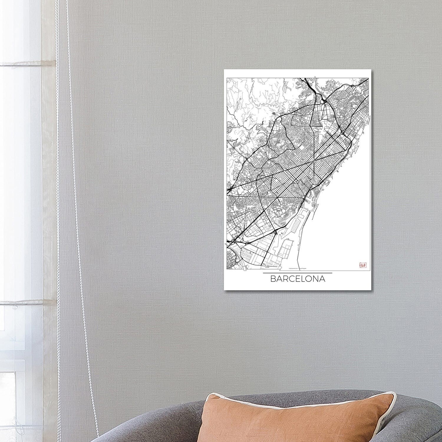 iCanvas "Barcelona Minimal Urban Blueprint Map" by Hubert Roguski Canvas Print