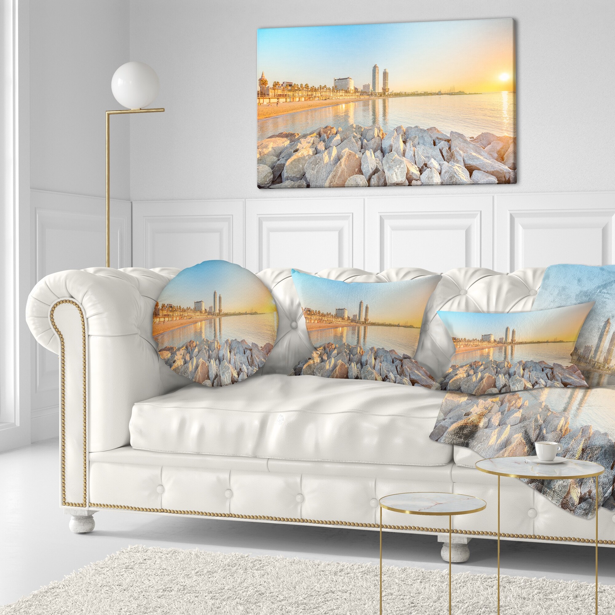 Designart 'Barceloneta Beach in Barcelona' Seashore Photo Throw Pillow