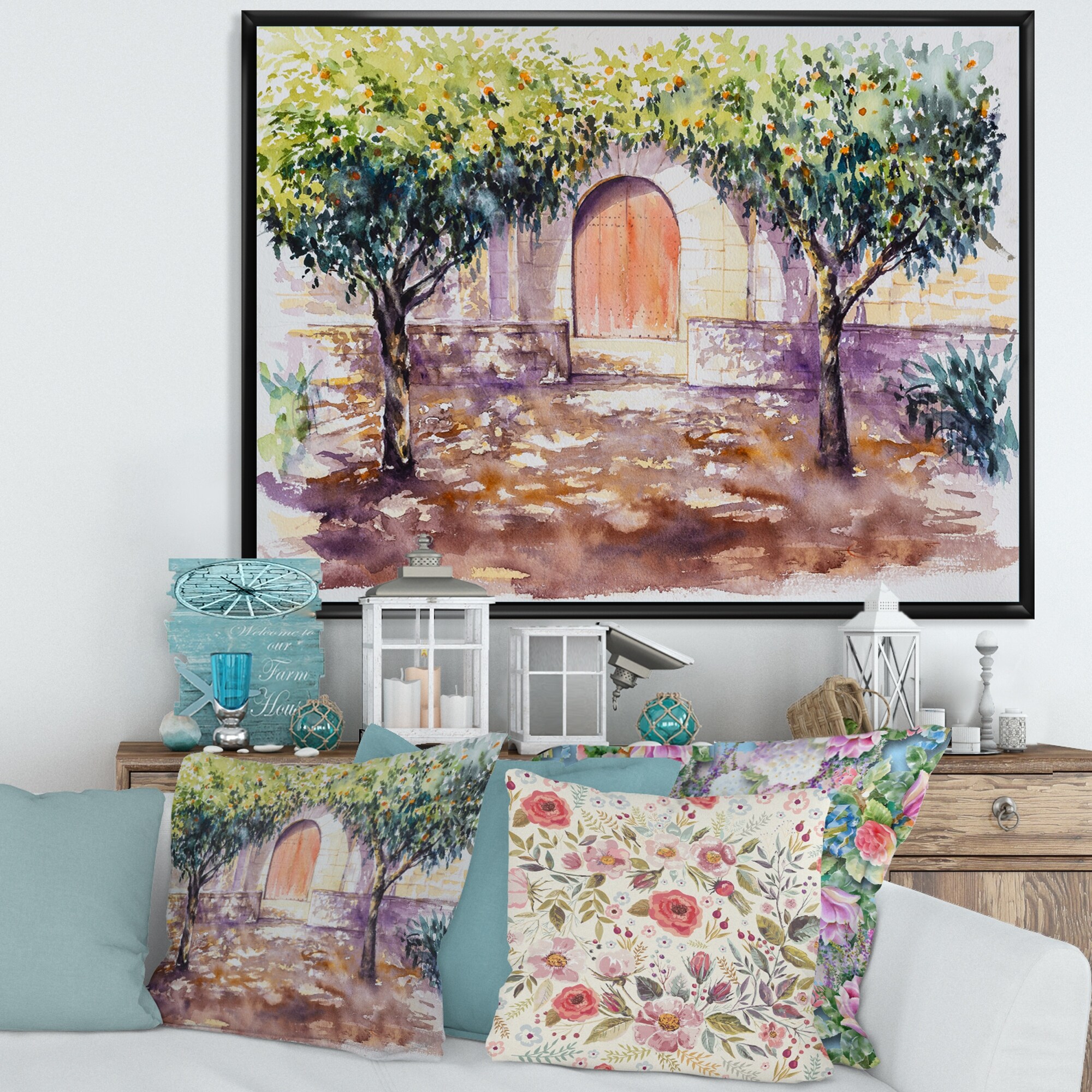Designart "Backyard Library in Barcelona With Orange Trees" Traditional Framed Canvas Wall Art Print