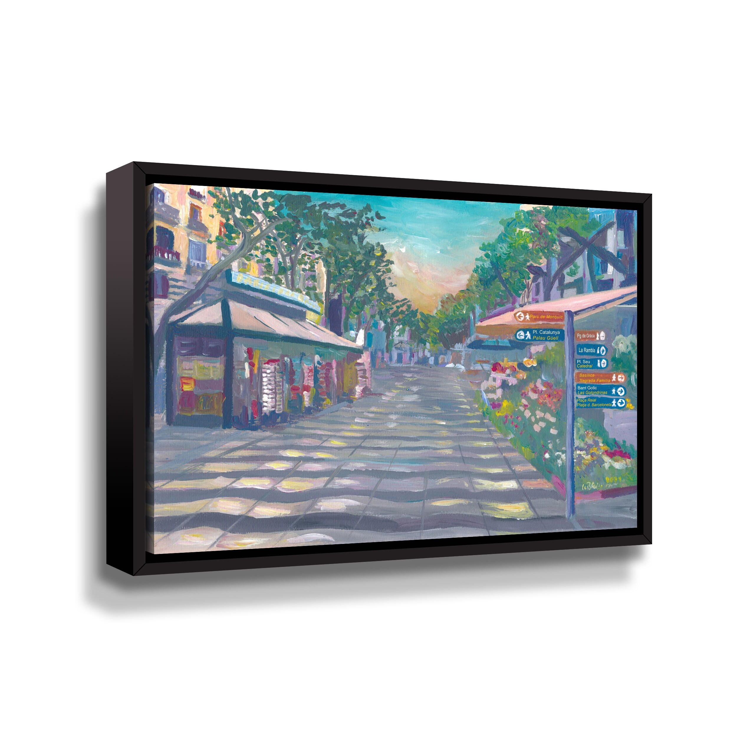 Barcelona Rambla Street Scene with Signpost Gallery Wrapped Floater-framed Canvas