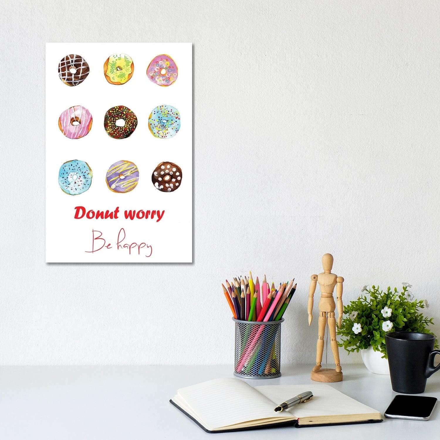 iCanvas "Donut Worry Be Happy" by Rongrong DeVoe Canvas Print