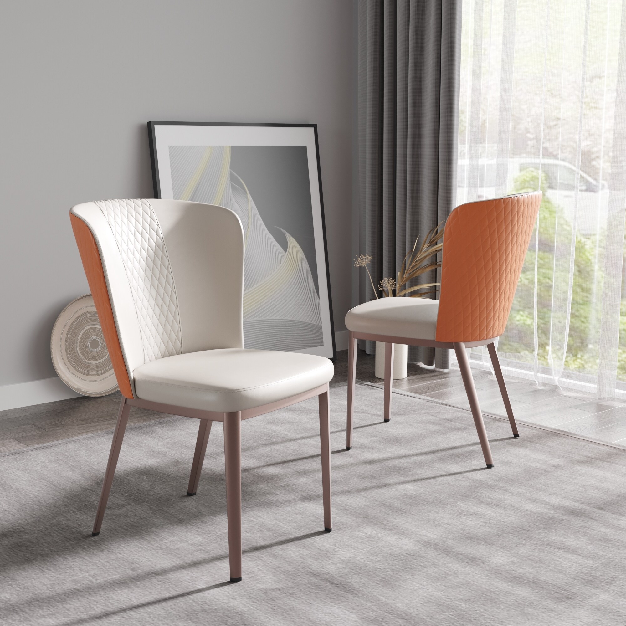 Set of 2 C-Shaped Metal Leg Upholstered Dining Chairs