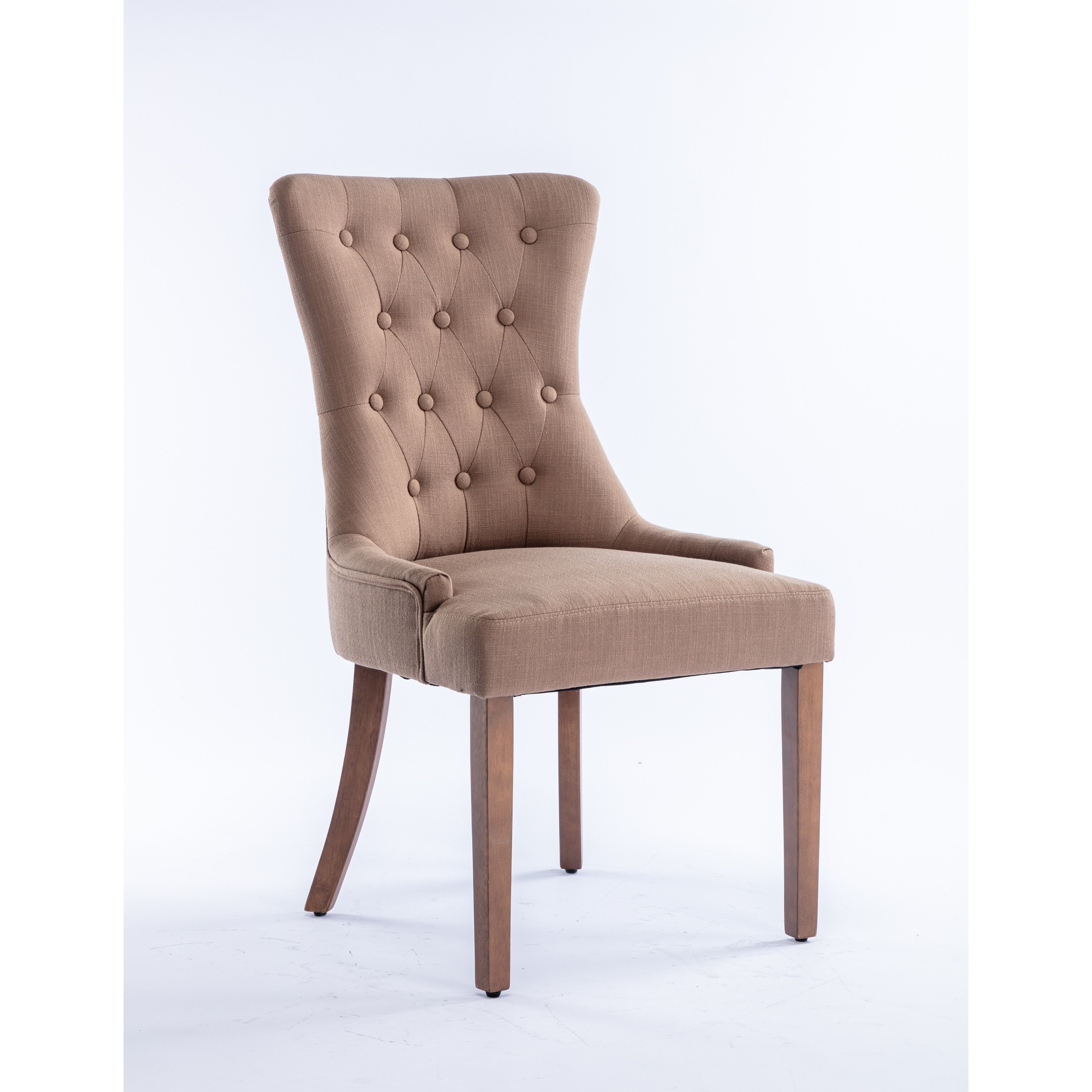 2 PCS Classic Button Tufted Gray Linen Fabric Upholstered Dining Chair with Solid Wood Legs for Dining Room