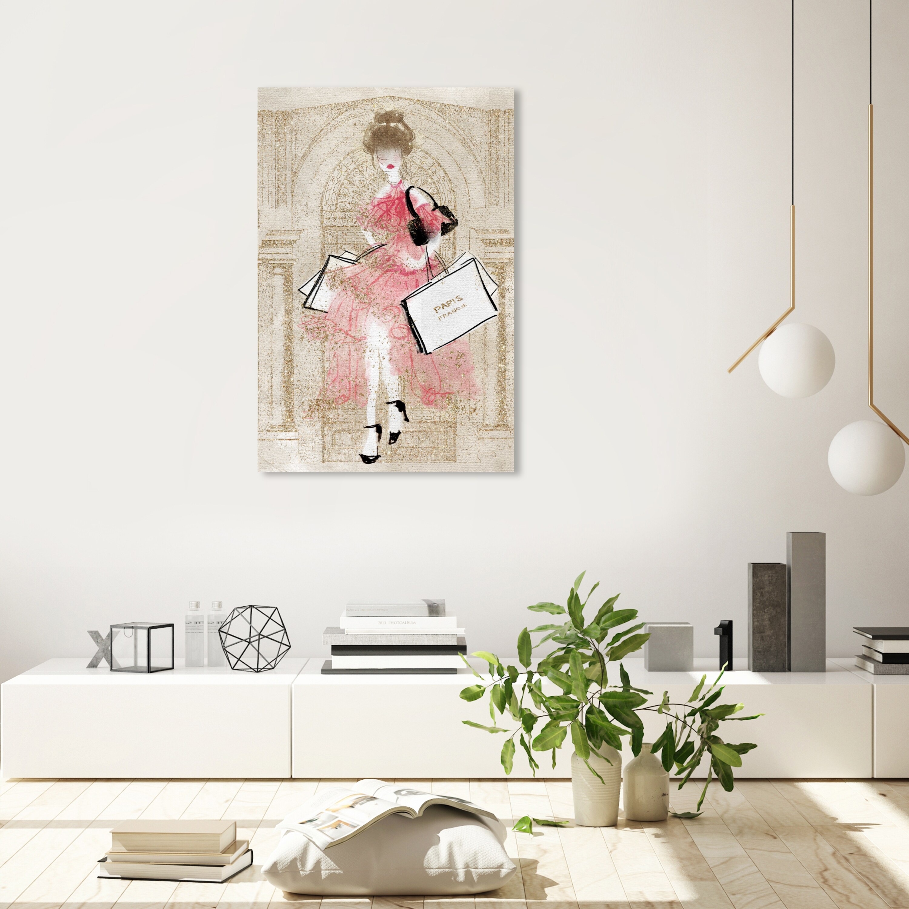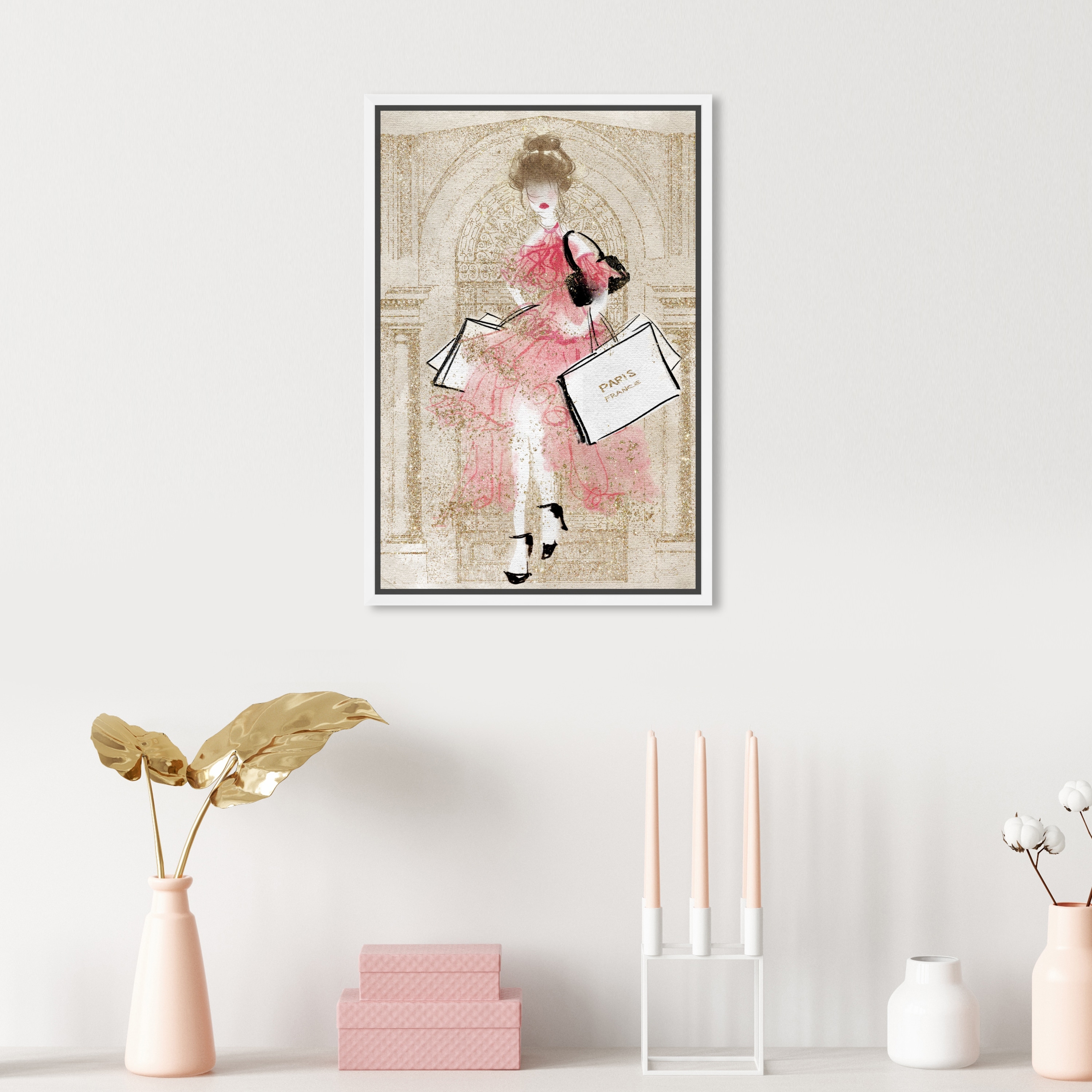 Oliver Gal 'Shopping in Paris Blush Glitter' Fashion and Glam Wall Art Framed Canvas Print Dress - Brown, Pink
