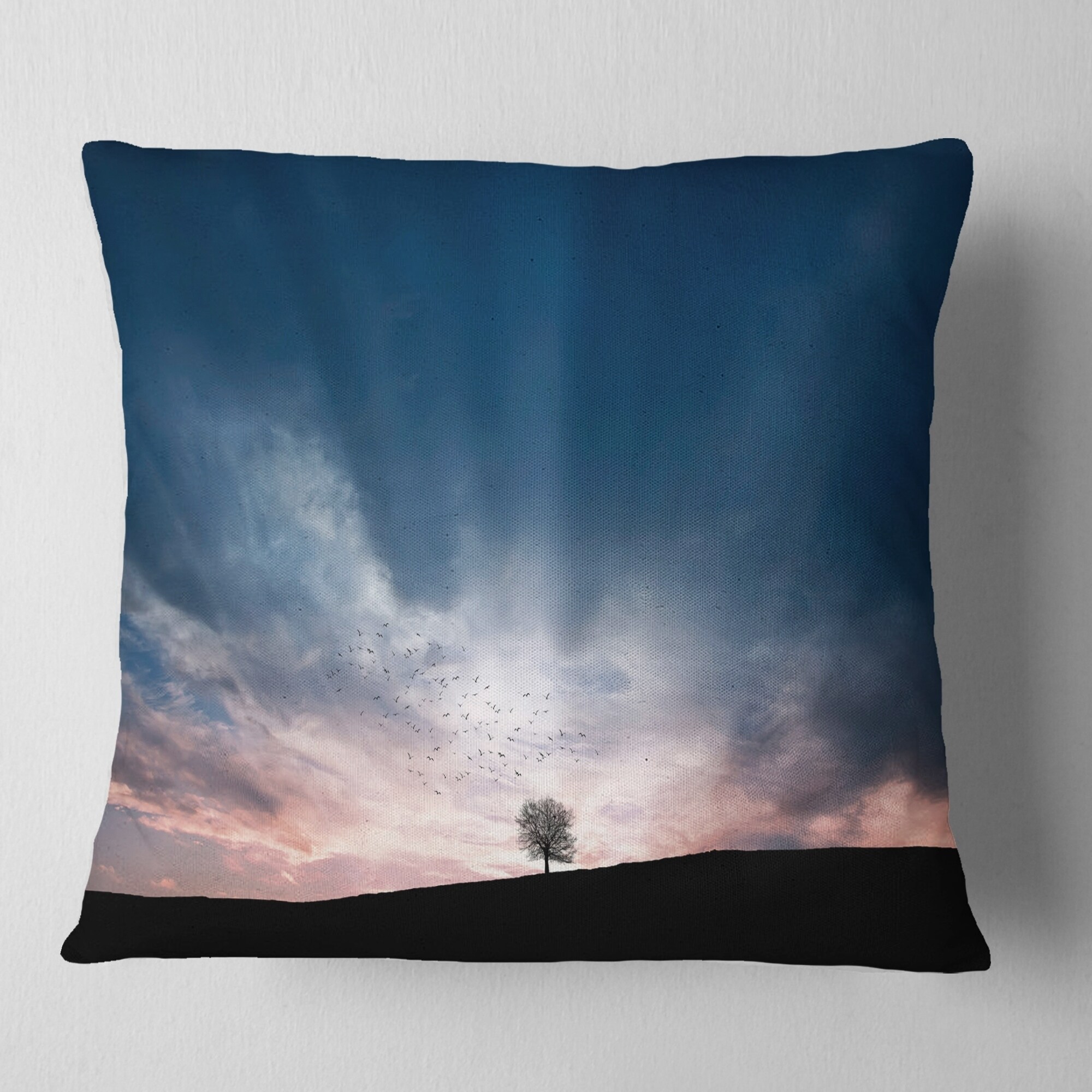 Designart 'Flock of Birds and Lonely Tree' Landscape Printed Throw Pillow